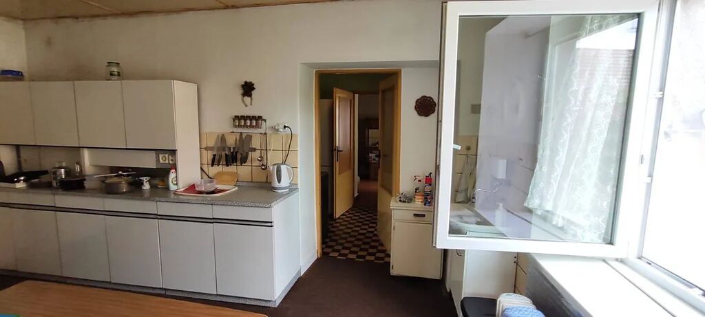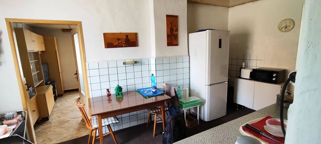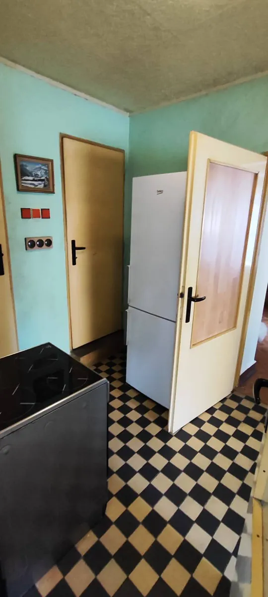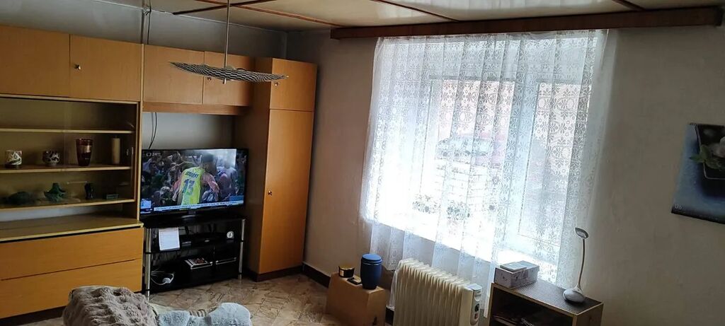 Nabízím k prodeji přízemní dům o třech místnostech, verandou, chodbou, koupelnou, sklepem, půdou, zahradou a kolnami na klidném místě v Kladně Švermově poblíž základní školy. Vytápění domu je lokální 3 olejovými radiátory, ohřev teplé vody je elektrickým bojlerem, v kuchyni průtokovým elektrickým ohřívačem. Kanalizace vede v ulici, plynová přípojka je ukončena na hranici pozemku, stropy ve všech místnostech jsou sanovány polystyrénovými čtverci nebo umakartem, schody na půdu a do sklepa jsou betonové.