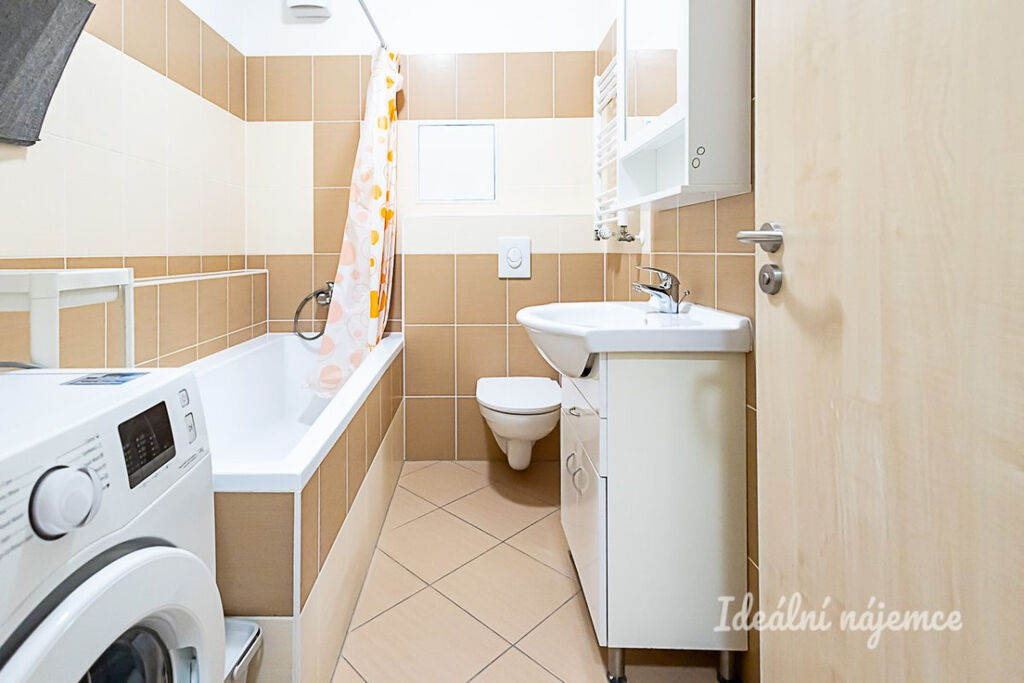 Byt je plně vybavený a připravený k okamžitému nastěhování, takže se můžete ihned zabydlet. Kuchyně nabízí lednici s mrazákem, mikrovlnnou troubu, indukční varnou desku, digestoř a dostatek úložného prostoru. Obývací část je vybavena pohodlným gaučem, konferenčním stolkem, obývací stěnou a jídelním koutem, s přímým vstupem na balkon. Ložnice poskytuje komfortní postel, noční stolky, komodu a šatní skříň. Koupelna je vybavena vanou, umyvadlem, pračkou a WC.