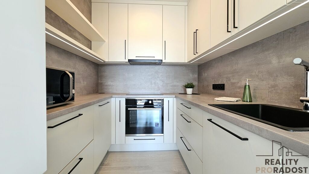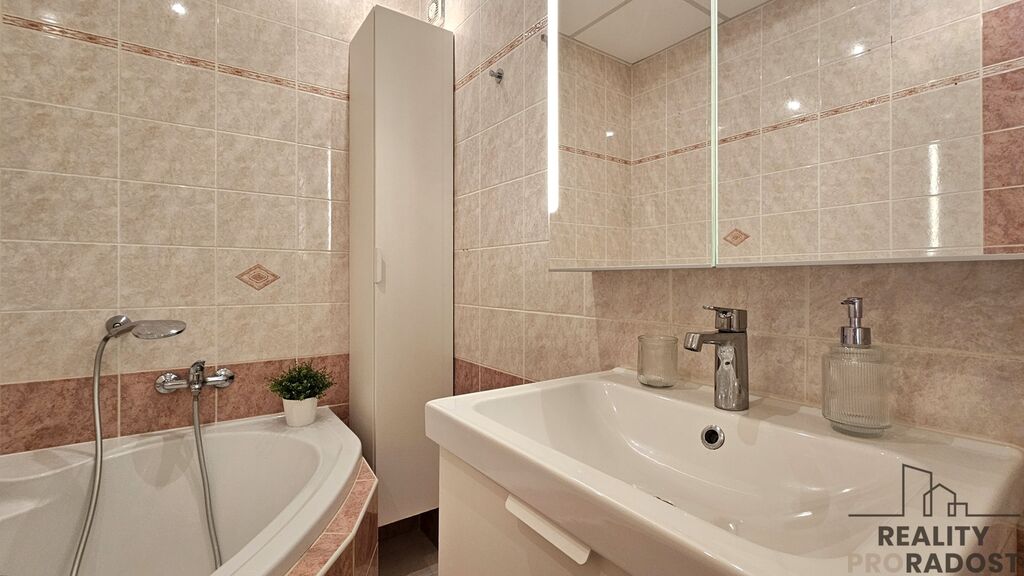 Byt je po rekonstrukci, v excelentním stavu a navíc byl doposud užíván pouze majiteli – což je na jeho kvalitě opravdu znát. Obývací část s kuchyňským koutem je díky jižní orientaci prosvětlená a zároveň poskytuje klid a soukromí. Okna do vnitrobloku. Moderní kuchyň je vybavena kvalitními spotřebiči pro pohodlné vaření a obývací pokoj nabízí dostatek prostoru jak pro odpočinek, tak i společenské chvíle. Samozřejmostí je dálkové ústřední vytápění a možnost internetové připojení. V bytě je dostatek úložného prostoru - velké vestavěné skříně na chodbě i v ložnici.