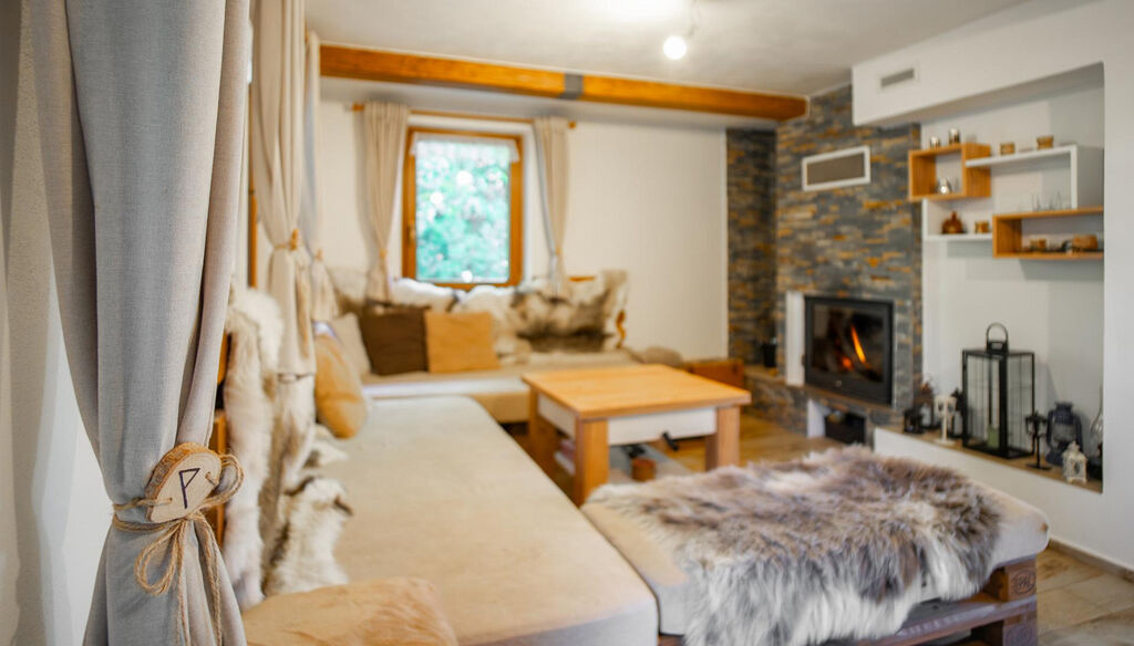 Vytápění je zde zajištěno horkovzduchem krbovým kamny v suterénu a v obývací místnosti, či je možno využít přímotopy.
