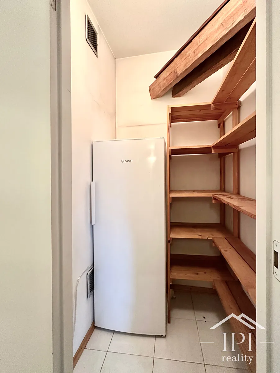 Byt je ve velmi dobrém stavu a poskytuje vysoký standard bydlení díky svému komfortnímu vybavení, které zahrnuje například klimatizaci, hydromasážní vanu, šatnu, komoru, či vinotéku.