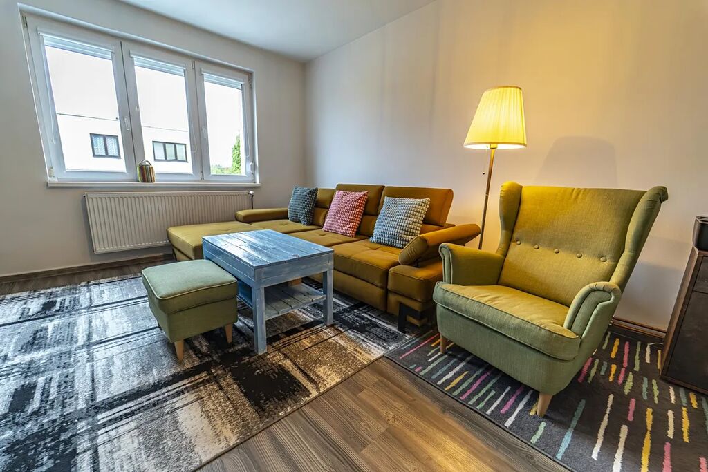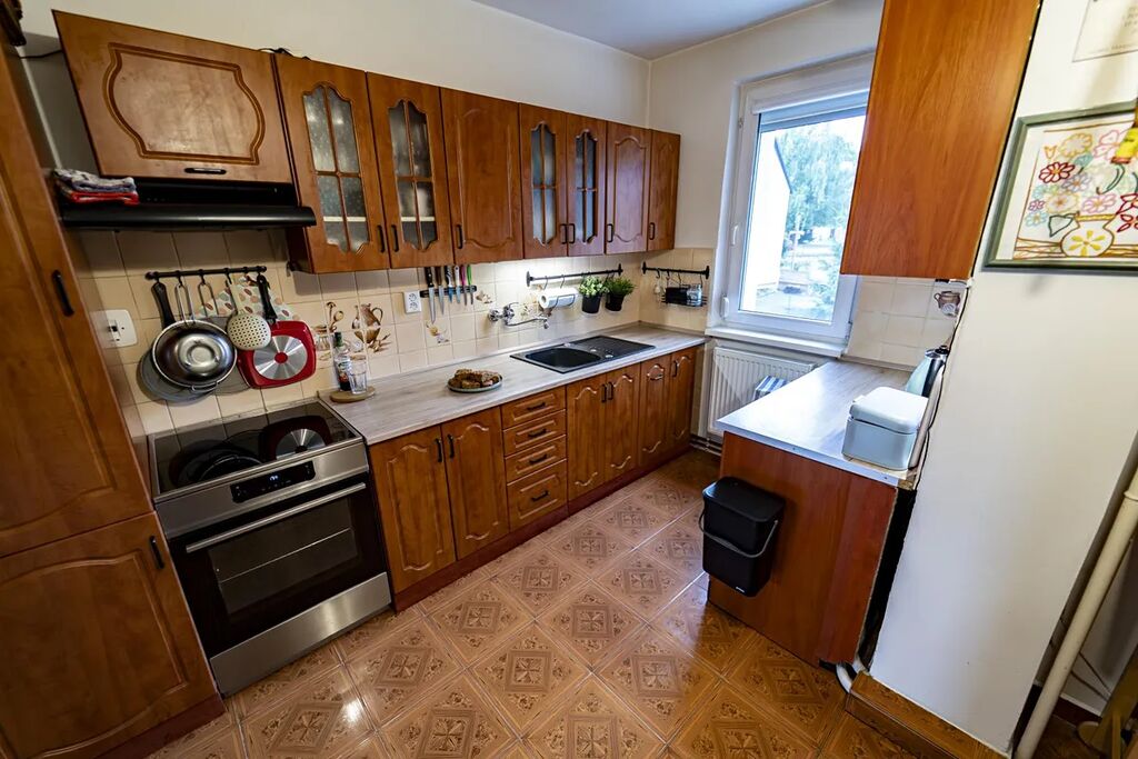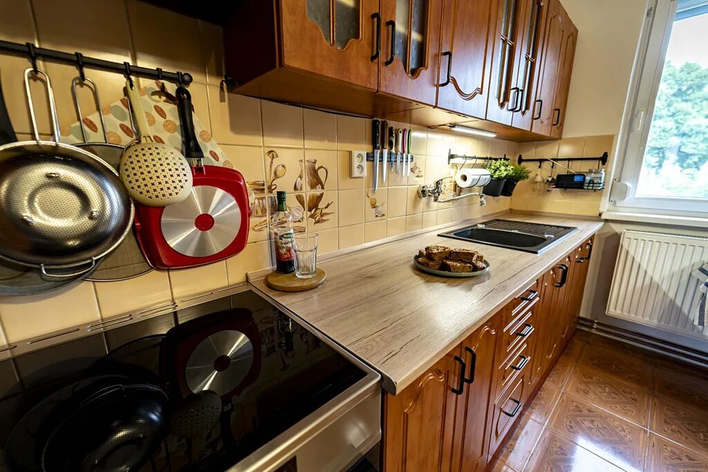 Dispozice bytu byla promyšleně upravena kuchyň byla rozšířena o bývalý prostor technické místnosti na chodbě, díky čemuž vznikla vzdušná a komfortní kuchyňská část. Součástí bytu je také vlastní spižírna v suterénu, ideální pro uskladnění potravin či zavařenin. K bytu dále náleží balkon s nově zhotovenou podlahou, několik technických místností (sklepních prostor) a především vlastní garáž, která prošla kompletní rekonstrukcí - má nová vrata, litou podlahu a aktuálně slouží i jako relaxační zázemí.