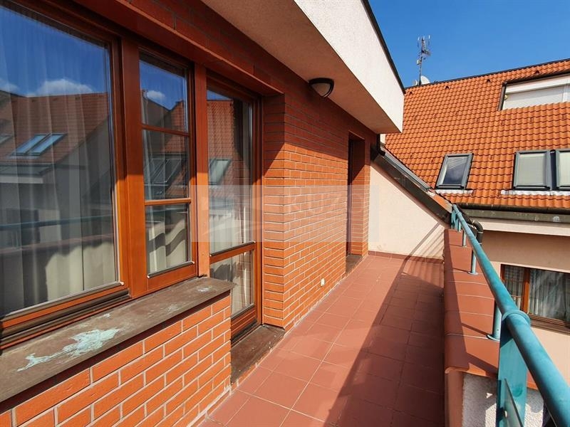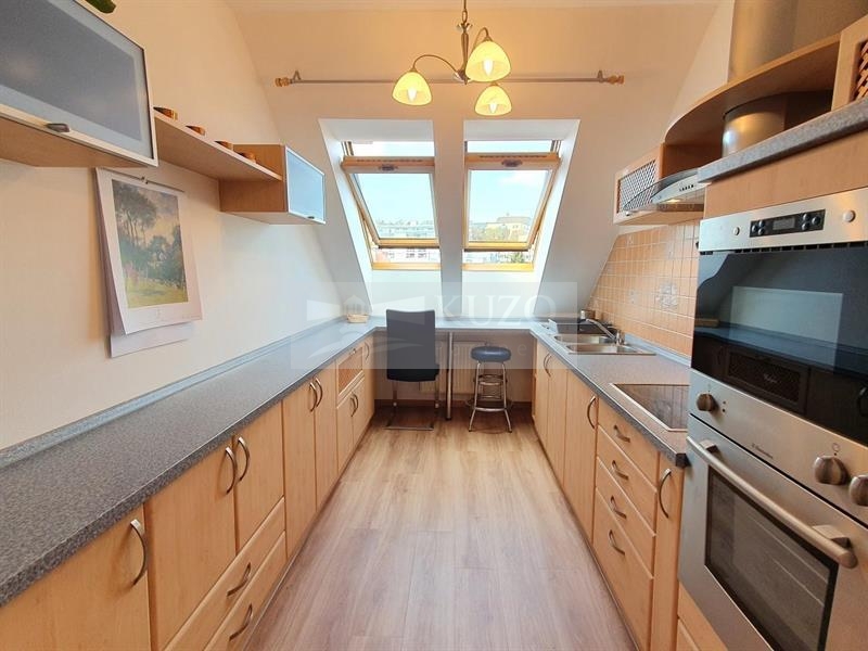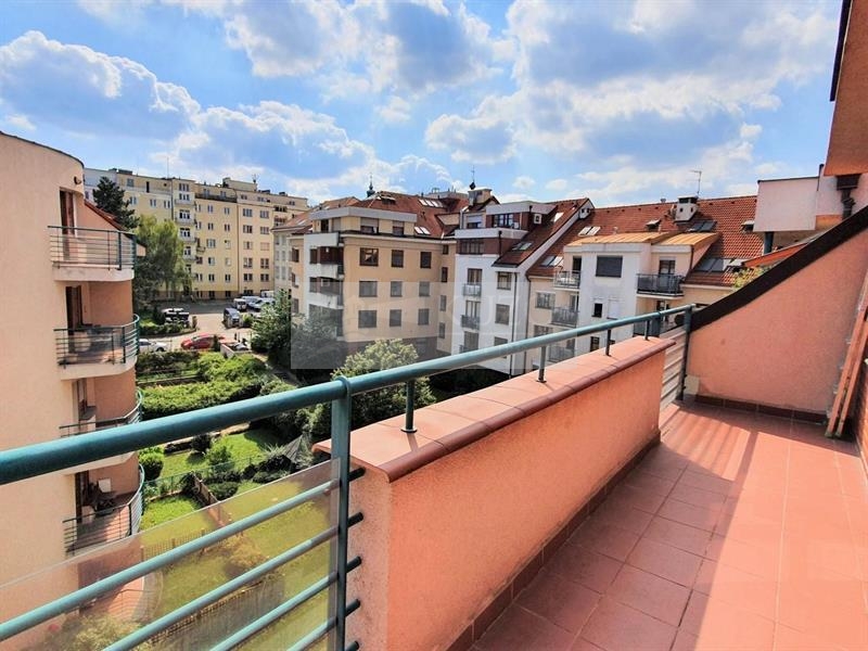 Orientace bytu a prostorné terasy o velikosti 11 m2 je na JV s výhledem do velmi klidného, prostorného, zeleného vnitrobloku, který je pravidelně udržovaný zahradníky (2 pokoje a terasa) a na SZ s výhledem do širého okolí Břevnova (vstupní hala, chodba, kuchyně a koupelna). Celý byt je příjemně prosvětlený díky střešním oknům a francouzskými okny se vstupem na terasu. Byt sestává z prostorné vstupní haly, kterou je možné díky 3 střešním oknům využívat např. i jako pracovnu, vnitřní chodby s denním světlem, ze které se vstupuje do ostatních částí bytu - obývacího pokoje propojeného s kuchyní, neprůchozí ložnice, prostorné koupelny se střešním oknem a na samostatné WC. Přístup na terasu je možný z obou pokojů.