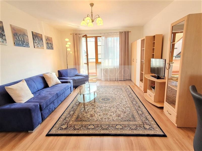 Byt se nabízí kompletně zařízený nábytkem (po dohodě je možné některé kusy nábytku umístit do sklepa). Kuchyňská linka je vybavena indukční varnou deskou, el. troubou, digestoří, lednicí s mrazákem, mikrovlnnou troubou a nádobím, dále nábytek, dekorace, postele s úložným prostorem, k dispozici jsou lůžkoviny, vysavač, žehlička, žehlící prkno, sušák na prádlo apod. Veškeré interiérové dveře jsou zánovní. Součástí bytu jsou také i bezpečnostní vchodové dveře NEXT a domácí videotelefon. Na podlaze je kvalitní vinyl, 2 solitérní koberce a dlažba. Topení je ÚT. K bytu náleží garážové stání přímo v domě v 1.PP, které je možné si pronajmout za 2.794 Kč měsíčně. K bytu dále náleží prostorný sklep 3 m2 rovněž v 1.PP. V domě je k dispozici společná sušárna.