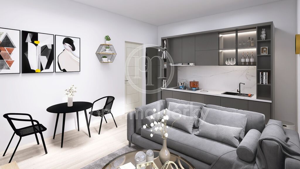 Ve výhradním zastoupení majitele nabízím MODERNÍ BYT 2+kk o podlahové ploše 44,1 m2. Výměra zahrnuje obývací pokoj s kuchyňským koutem, ložnici, předsíň a koupelnu s toaletou. K bytu dále náleží nádherná terasa orientovaná do zahrady, 9,3 m2, ze které je následně přístupná zahrada s výměrou 31,5 m2. Na uložení sezonních věcí poslouží sklad 3m2. U parkovacího stání před domem bude připravena přípojka pro dobíjení elektromobilu patřící výhradně pro tento byt.