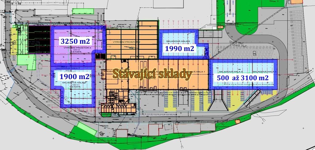 Haly - NOVOSTAVBA - započaty stavební práce. Možno vstoupit do celkových úprav, přípravy zázemí a počet požadovaných kanceláří. Objekty NOVOSTAVBA - teplý PURpanel, stropní světlíky, LED osvětlení a samostatné vytápění hal. K dispozici rampy TIR, vjezdy do haly a malé rampy pro E-shopy. V rámci zajištění energií nutno dopředu rezervovat el. příkon - trafo cca 1,2 MV. Voda, plyn samozřejmostí. Nájem je nabízený DLOUHODOBĚ (!), výhodné smluvní podmínky, lze plánovat i rozvoj skladů v místě. Rezervace skladové plochy a jednání o úpravách možno započíst IHNED. Foto - reálné