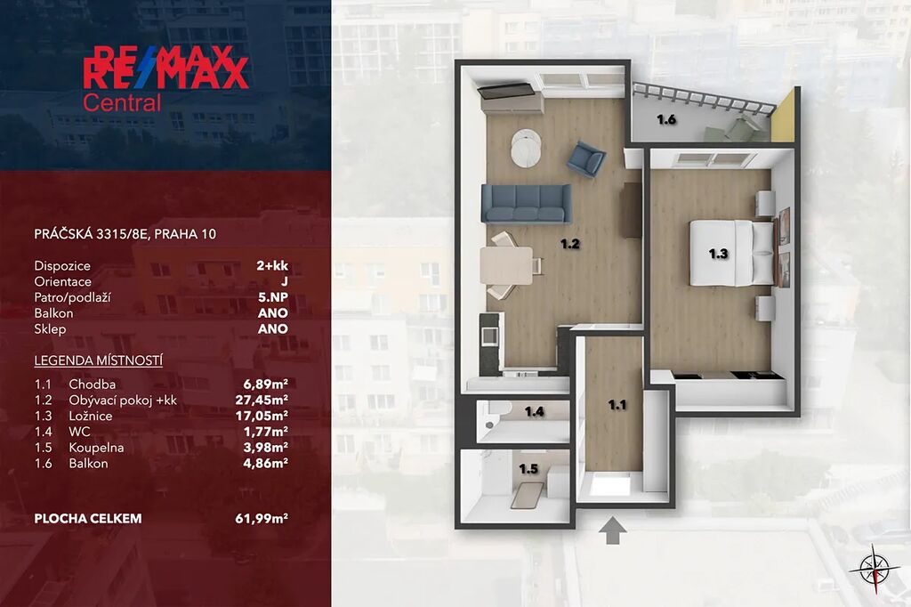 Prodej bytu 2+kk, Praha - Záběhlice, Práčská, 57 m2 (ID: 1955216)