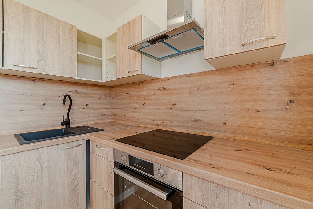 • Kuchyňská linka s dostatkem úložného prostoru a se spotřebiči ( myčka nádobí, elektrická varná deska, elektrická trouba, granitový dřez, digestoř).