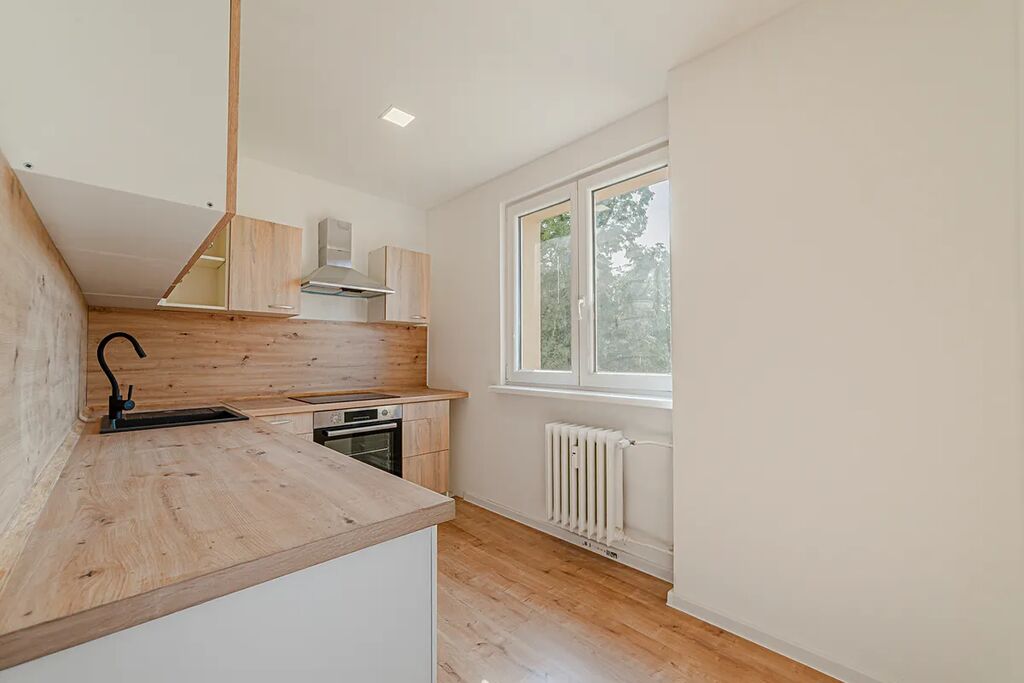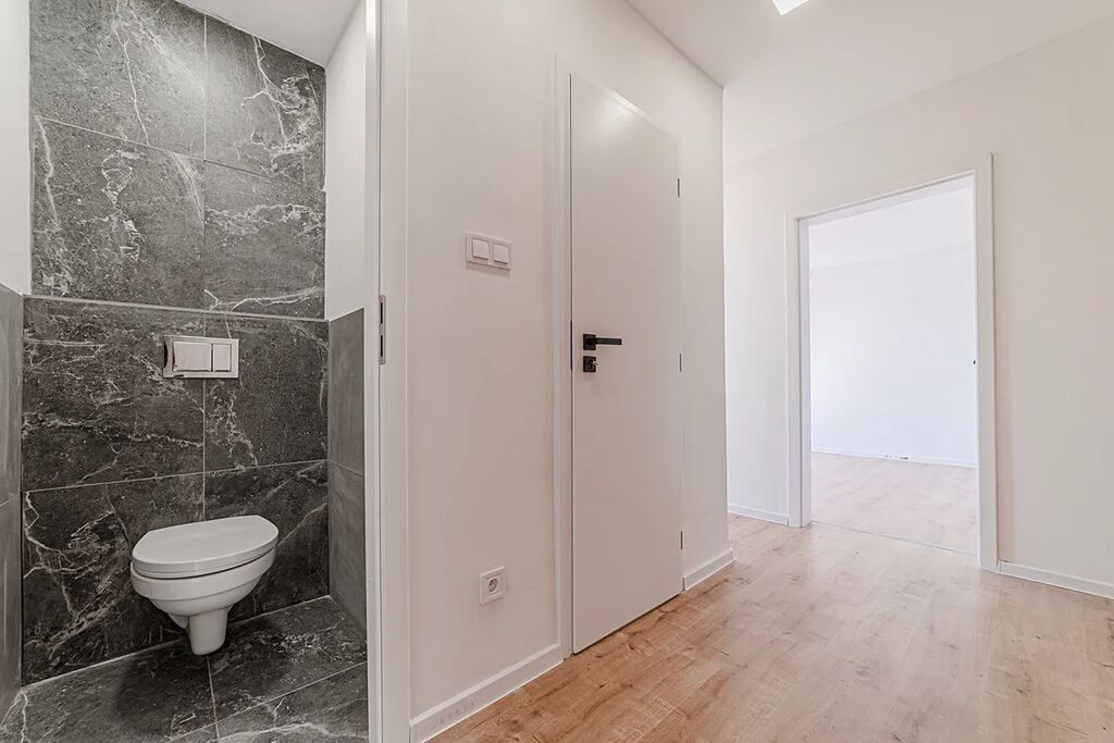 • Bytová jednotka po kompletní rekonstrukci (nové elektrické rozvody, rozvody vody, odpadu, nové omítky, laminátové podlahy, nové zděné jádro, snížené stropy SDK, led osvětlení, nové interiérové dveře s obložkami. Toaleta oddělena.