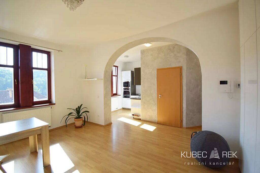 Nabízíme k pronájmu elegantní byt 1+kk o ploše 36 m², který se nachází ve druhém patře zrekonstruované secesní vily v jedné z nejžádanějších vilových čtvrtí v Táboře.