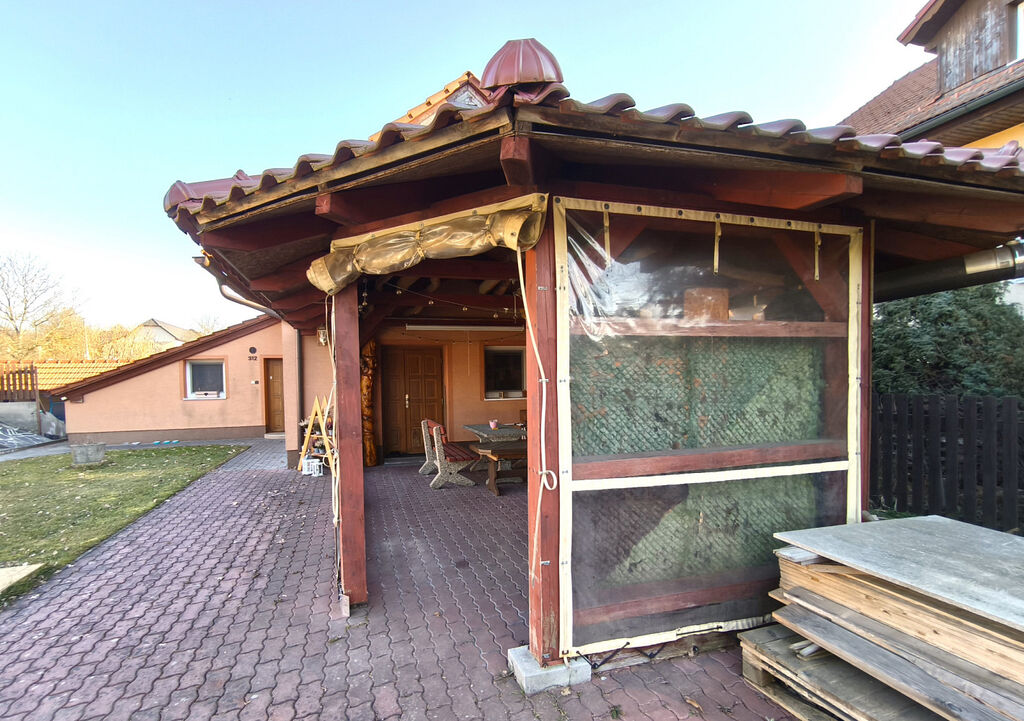 Na zahradě je k dispozici bazén zapuštěný v zemi s technologií, zahradní domek na uskladnění nářadí, kotec pro psa, případně možno využít jako dřevník na palivové dřevo.