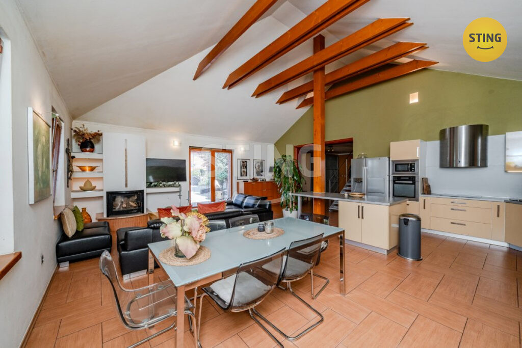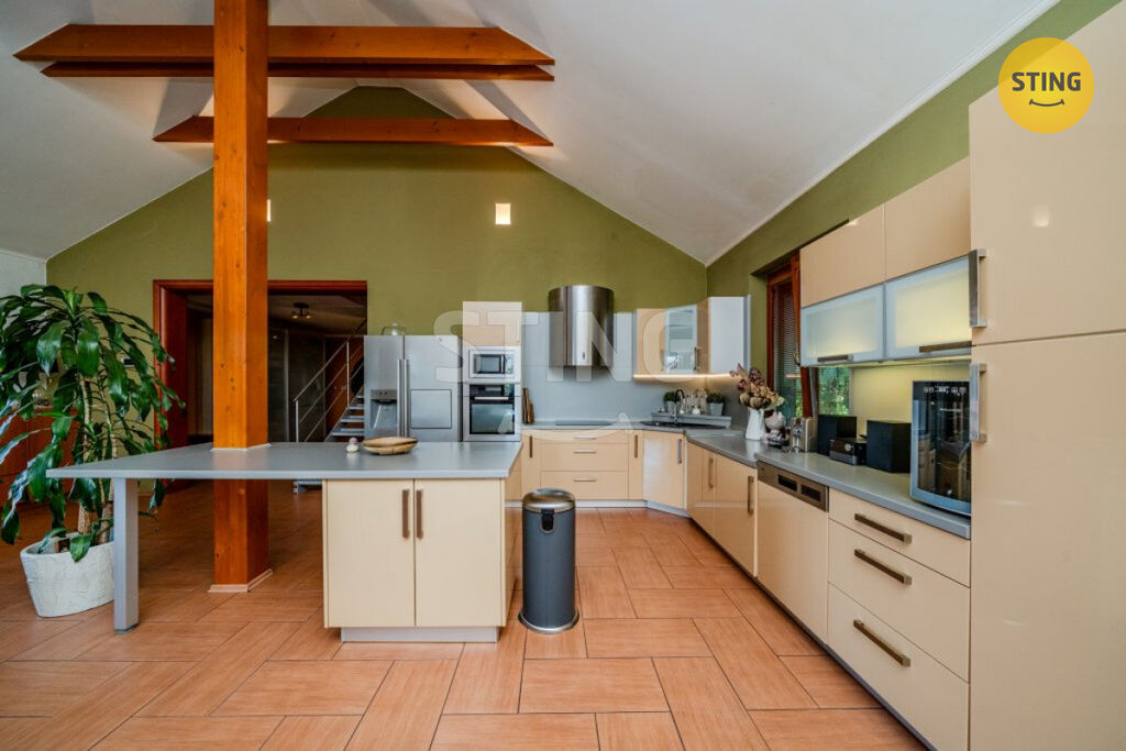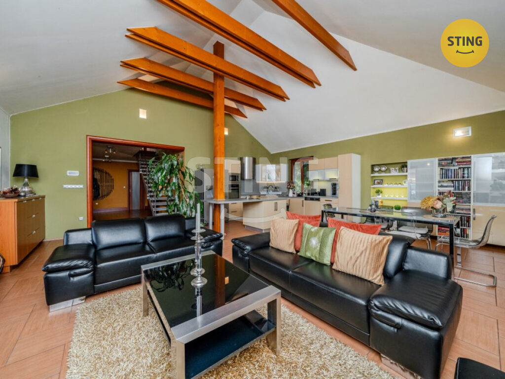 Nabízíme Vám k prodeji rodinný dům o vel. 6+KK, ul. Nad Úhorem, v Ostravě Petřkovicích. Jedná se o zděný dům (Ytong), zateplený (15cm polyester) se sedlovou střechou (krytina - BRAMAC taška), kolaudace v roce 2008. Půdorys domu: v 1.NP se nachází srdce celého domu - obývací pokoj propojený s kuchyní a jídelním zázemím (o vel.54,3m2) se vstupem na terasu. Atmosféru prostoru umocňuje krb s výměníkem. Prostor designově zkrášlují a také pomyslně rozdělují dřevěné trámy na stropě. Moderní kuchyňská linka na míru se spotřebiči (kuchyňské studio Válek & Kačena) s ostrůvkem. Praktická technická místnost o vel. 8,3 m2 (pračka, sušička), plynový kotel. Tři samostatné pokoje (16m2, 16,4m2, 13,5m2). Velkorysá koupelna (o vel.10,9m2) ,masážní vana s tryskami a sprchovací kout. Podlahové vytápění na celém patře. V 2.NP. se nacházejí dva samostatné podkrovní pokoje (o vel. 32,5m2, 40,9m2). Přístup k domu je zajištěn elektrickou bránou na dálkové ovládání. Exteriér domu - na dvoře položena kvalitní zámková dlažba. Za příznivého počasí si můžete vychutnat posezení či grilování na terase, kde je umístěn zahradní nábytek se slunečníkem a venkovní cihlová kamna. Veškeré nářadí či hobby nástroje si můžete umístit v zahradním domku (o vel.12m2, železná konstrukce, zateplený, obložený dřevem), kryté parkovací stání pro 2 auta, na pozemku zaparkuje až 6 aut. Obec Ostrava Petřkovice je oblíbená pro svou kombinaci klidného prostředí a snadné dostupnosti služeb. Patří mezi vyhledávané části Ostravy zejména díky svému charakteru rodinné výstavby a dostupnosti k přírodě v okolí. Pokud hledáte ideální rodinné bydlení neváhejte mne kontaktovat telefonicky či mailem. Budu se těšit na prohlídku s Vámi. Do konce října 2025 nabízíme prostřednictvím našeho partnera úrokové sazby od 4,29 % p.a. Více informací Vám sdělí náš specialista na prohlídce.