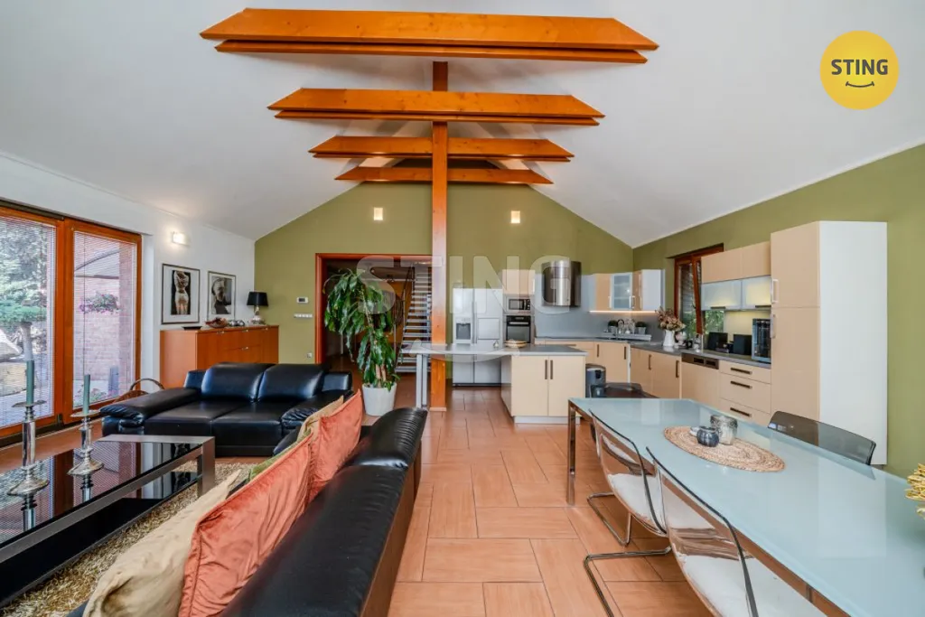 Nabízíme Vám k prodeji rodinný dům o vel. 6+KK, ul. Nad Úhorem, v Ostravě Petřkovicích. Jedná se o zděný dům (Ytong), zateplený (15cm polyester) se sedlovou střechou (krytina - BRAMAC taška), kolaudace v roce 2008. Půdorys domu: v 1.NP se nachází srdce celého domu - obývací pokoj propojený s kuchyní a jídelním zázemím (o vel.54,3m2) se vstupem na terasu. Atmosféru prostoru umocňuje krb s výměníkem. Prostor designově zkrášlují a také pomyslně rozdělují dřevěné trámy na stropě. Moderní kuchyňská linka na míru se spotřebiči (kuchyňské studio Válek & Kačena) s ostrůvkem. Praktická technická místnost o vel. 8,3 m2 (pračka, sušička), plynový kotel. Tři samostatné pokoje (16m2, 16,4m2, 13,5m2). Velkorysá koupelna (o vel.10,9m2) ,masážní vana s tryskami a sprchovací kout. Podlahové vytápění na celém patře. V 2.NP. se nacházejí dva samostatné podkrovní pokoje (o vel. 32,5m2, 40,9m2). Přístup k domu je zajištěn elektrickou bránou na dálkové ovládání. Exteriér domu - na dvoře položena kvalitní zámková dlažba. Za příznivého počasí si můžete vychutnat posezení či grilování na terase, kde je umístěn zahradní nábytek se slunečníkem a venkovní cihlová kamna. Veškeré nářadí či hobby nástroje si můžete umístit v zahradním domku (o vel.12m2, železná konstrukce, zateplený, obložený dřevem), kryté parkovací stání pro 2 auta, na pozemku zaparkuje až 6 aut. Obec Ostrava Petřkovice je oblíbená pro svou kombinaci klidného prostředí a snadné dostupnosti služeb. Patří mezi vyhledávané části Ostravy zejména díky svému charakteru rodinné výstavby a dostupnosti k přírodě v okolí. Pokud hledáte ideální rodinné bydlení neváhejte mne kontaktovat telefonicky či mailem. Budu se těšit na prohlídku s Vámi. Do konce března 2026 nabízíme prostřednictvím našeho partnera úrokové sazby od 4,29 % p.a. Více informací Vám sdělí náš specialista na prohlídce.