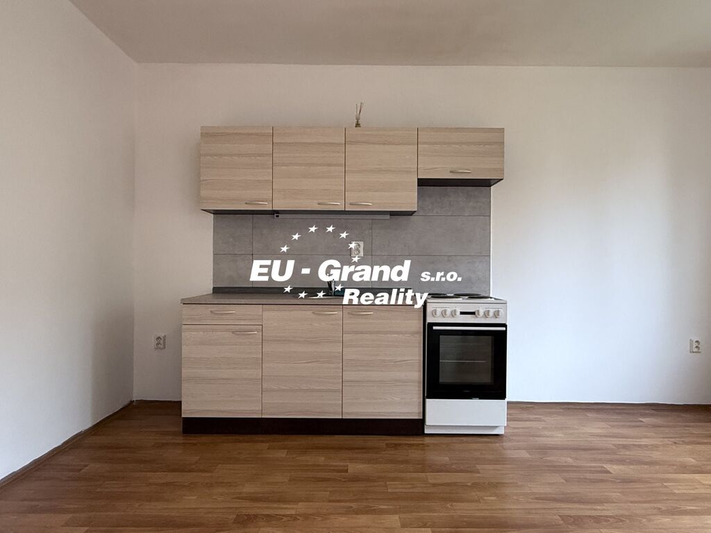 Hlavní obytný prostor s kuchyňskou linkou a praktickým výklenkem pro umístění ložnice, což vytváří pocit oddělené ložnicové části. Koupelna společná s WC, vybavena sprchovým koutem, umyvadlem a prostorem pro pračku.