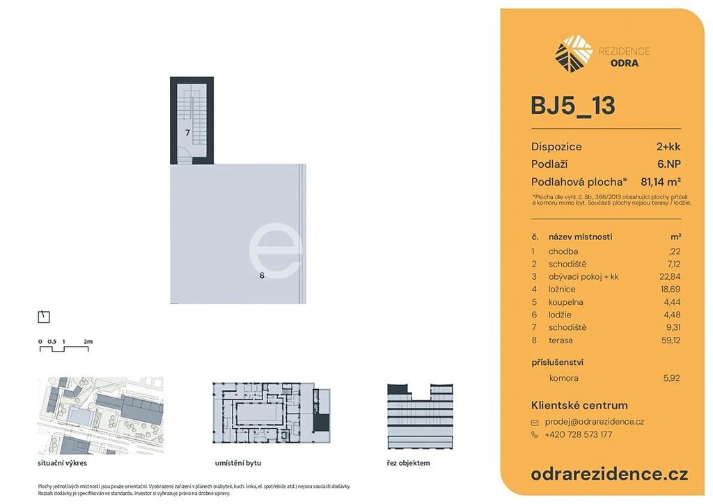 Hledáte nový domov v klidné a přitom skvěle dostupné lokalitě? Rezidence Odra je moderní projekt s duší i budoucností, který vzniká na místě bývalého obchodního centra v pražských Bohnicích. Nyní vám nabízíme konkrétní volnou jednotku 2+kk o ploše 81,14 m², nacházející se v 5. nadzemním podlaží budovy ve fázi dokončení.