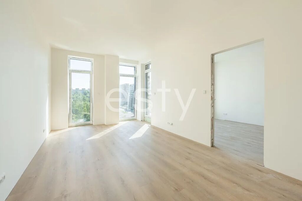 Byt zaujme vysokými stropy, které umocňují vzdušnost interiéru, a velkoformátovými okny s jižní orientací, díky nimž je prostor krásně prosvětlený. Součástí bytu je i útulná lodžie, ideální k ranní kávě nebo večernímu odpočinku.
