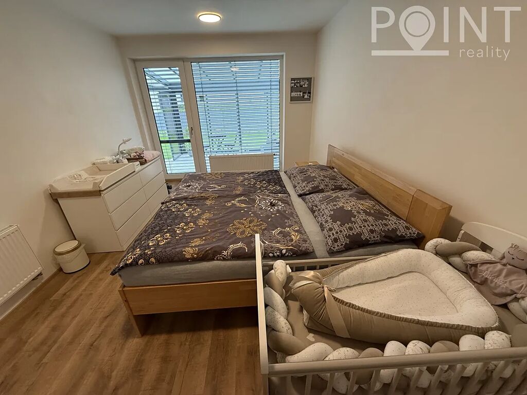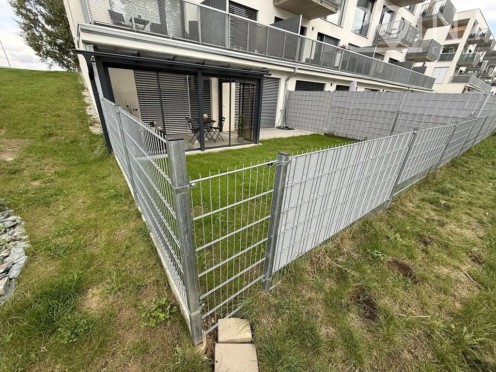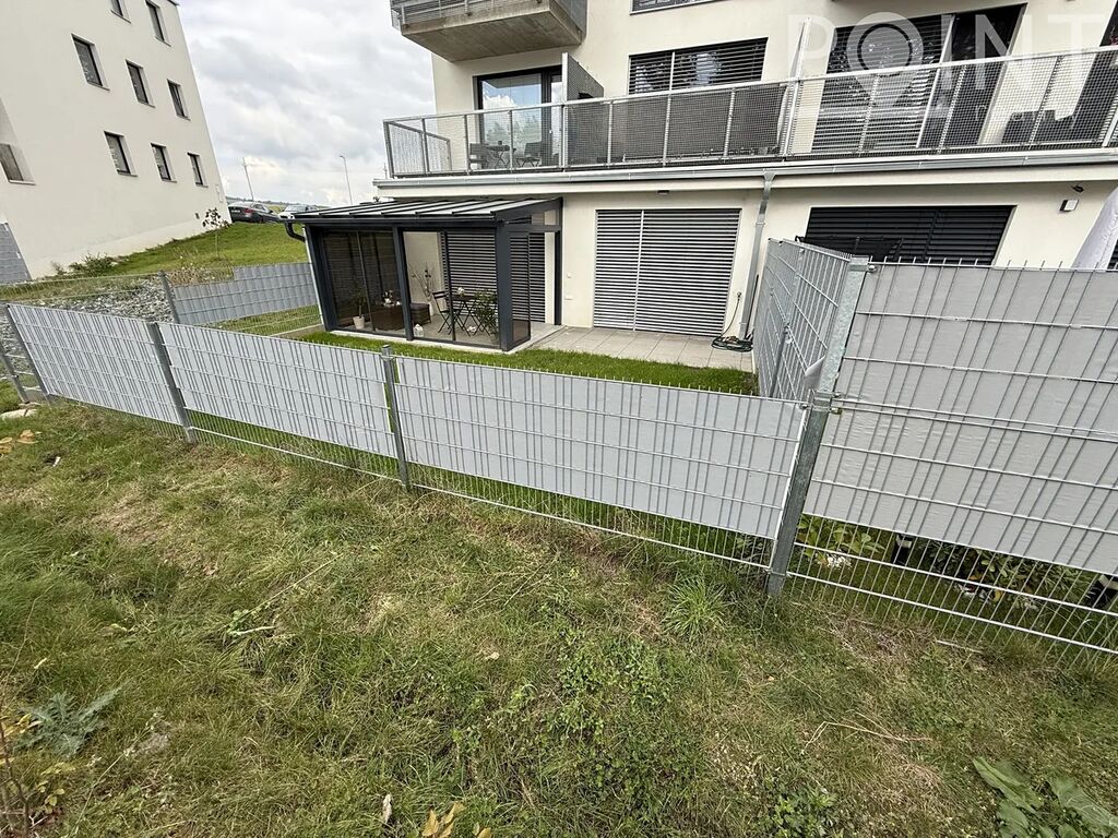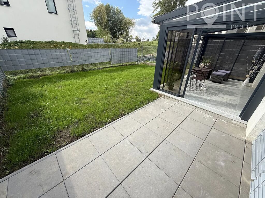 Nabízíme nadstandardně vybavený přízemní byt o velikosti 75 m2 v nové výstavbě na Sídlišti Osvobození. Byt byl zkolaudován v roce 2023. K bytu náleží parkovací stání 13m2 přímo před domem v hodnotě 300.000,-Kč. Z obývacího pokoje i ložnice lze vyjít na terasu se zahradou a k ní náleží i zimní zahrada, to vše o velikosti 57m2. Terasa je vydlážděna, přivedená elektřina na terasu a nezámrzný ventil na vodu. Dominantou je postavena zimní zahrada z hliníkové konstrukce, mléčné sklo na střeše skrz soukromí. Je zde vybudovaná zátěžová dlažba, možno využít pro vířivku. Lze využít i boční vstup na zahradu pro případné návštěvy. K bytu náleží sklad cca 4m2, kde je přivedena elektřina. Sklad je umístěn na chodbě hned vedle bytu a je možné v něm nabíjet např: nářadí, elektrokola apod. Pro kočárek poslouží výklenek před bytem, případně kočárkárna. Výtah je samozřejmostí. V domě se nachází také dvě kolárny. Šatna má nově vestavěný nábytek a police na míru. Na všech oknech jsou dálkově ovládané venkovní rolety a sítě proti hmyzu. Nízké provozní náklady cca 3.500,-Kč/měsíc.