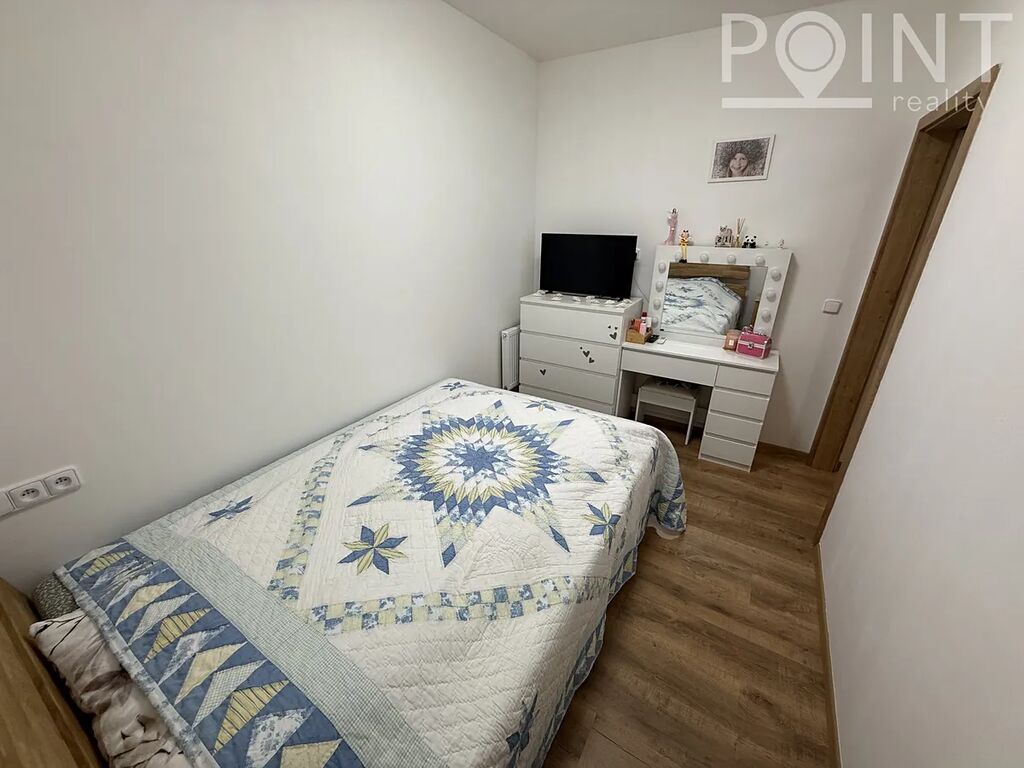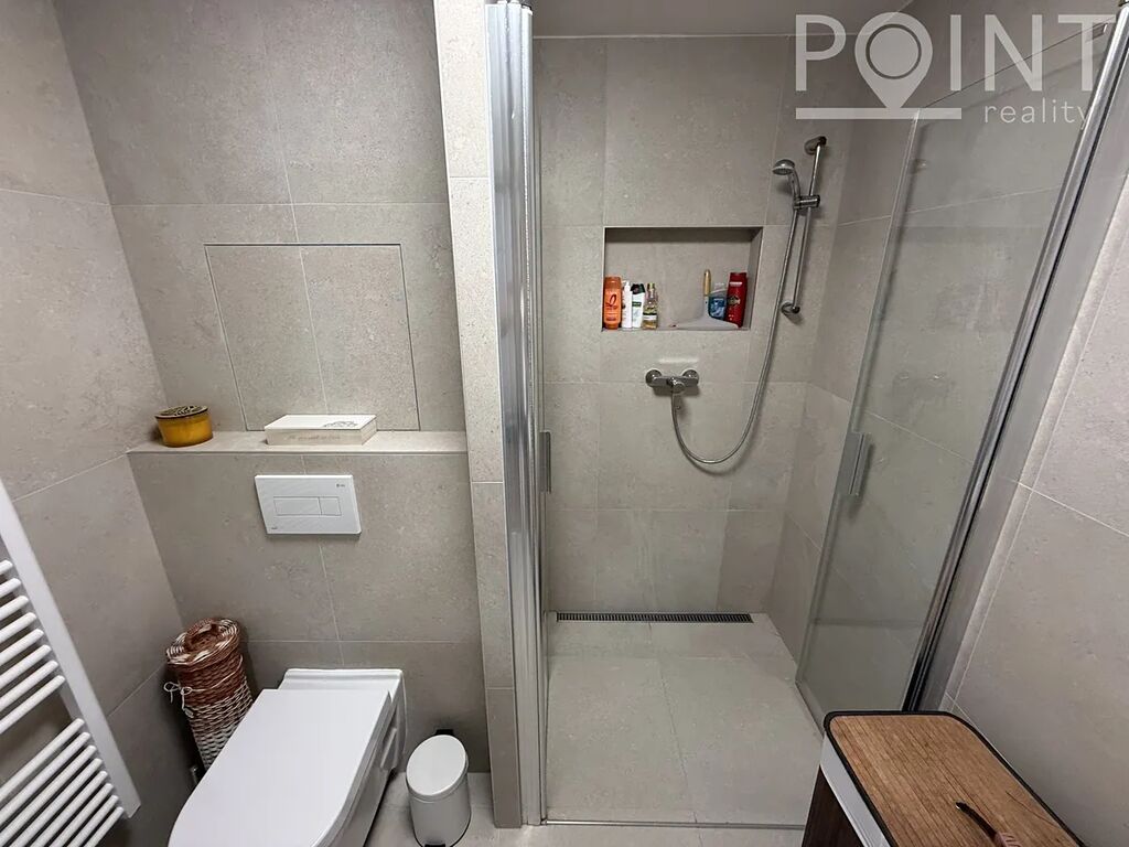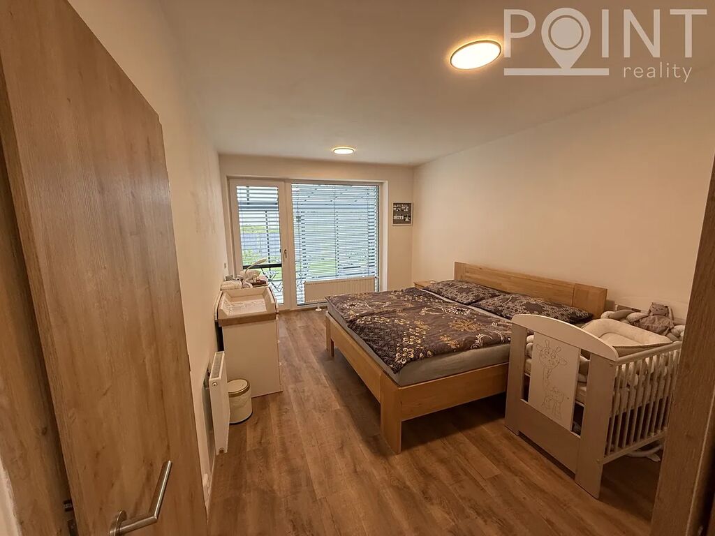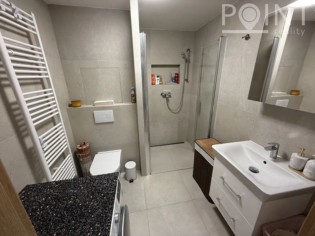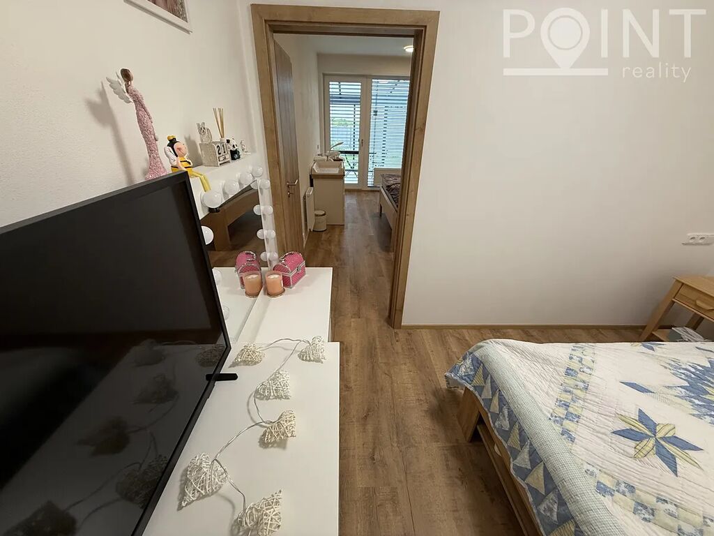 Nabízíme nadstandardně vybavený přízemní byt o velikosti 75 m2 v nové výstavbě na Sídlišti Osvobození. Byt byl zkolaudován v roce 2023. K bytu náleží parkovací stání 13m2 přímo před domem v hodnotě 300.000,-Kč. Z obývacího pokoje i ložnice lze vyjít na terasu se zahradou a k ní náleží i zimní zahrada, to vše o velikosti 57m2. Terasa je vydlážděna, přivedená elektřina na terasu a nezámrzný ventil na vodu. Dominantou je postavena zimní zahrada z hliníkové konstrukce, mléčné sklo na střeše skrz soukromí. Je zde vybudovaná zátěžová dlažba, možno využít pro vířivku. Lze využít i boční vstup na zahradu pro případné návštěvy. K bytu náleží sklad cca 4m2, kde je přivedena elektřina. Sklad je umístěn na chodbě hned vedle bytu a je možné v něm nabíjet např: nářadí, elektrokola apod. Pro kočárek poslouží výklenek před bytem, případně kočárkárna. Výtah je samozřejmostí. V domě se nachází také dvě kolárny. Šatna má nově vestavěný nábytek a police na míru. Na všech oknech jsou dálkově ovládané venkovní rolety a sítě proti hmyzu. Nízké provozní náklady cca 3.500,-Kč/měsíc.