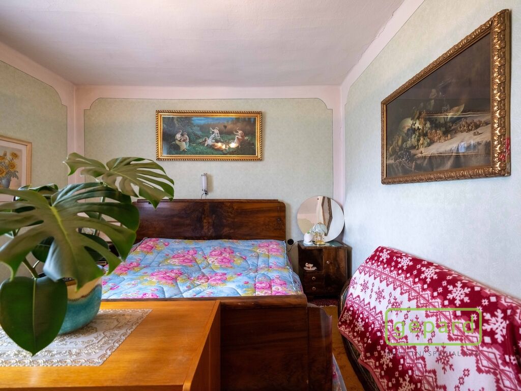 První patro: jeden prostorný pokoj a dva pokoje - půdní prostory, které jsou aktuálně využívané k uskladnění věcí. Po rekonstrukci lze v patře vybudovat až tři plnohodnotné pokoje.