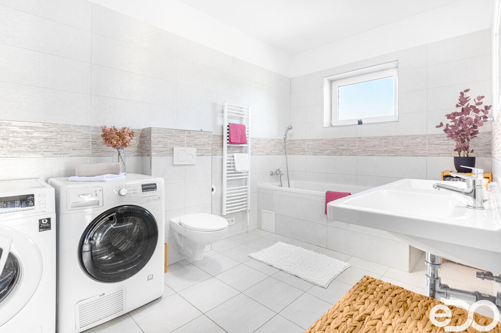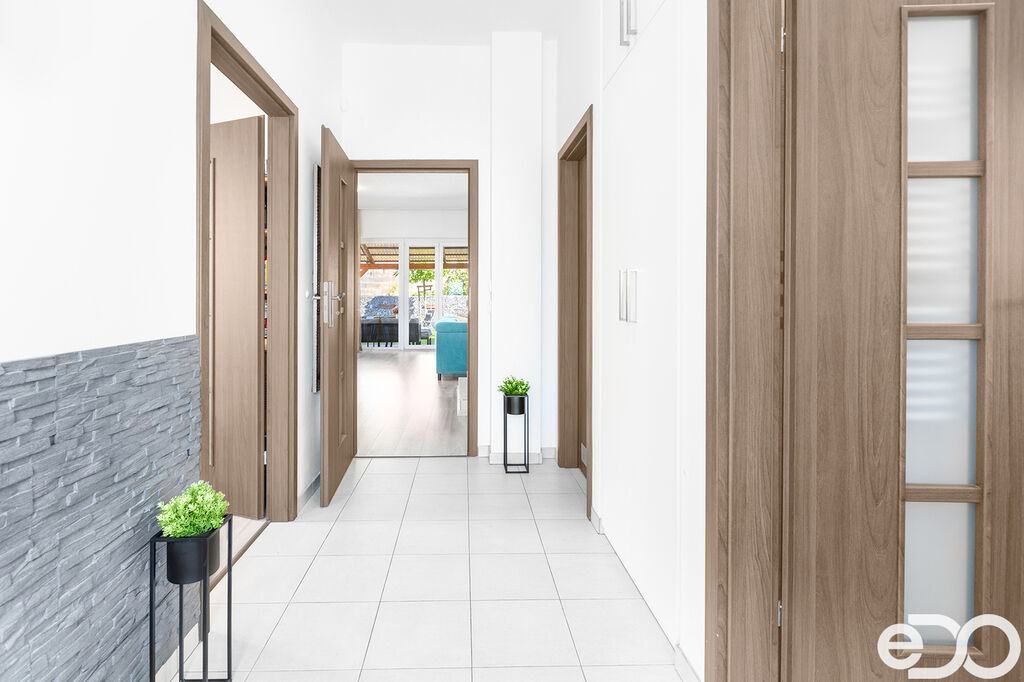 Něco jedinečného tu pro Vás mám. Velmi rád bych Vám nabídl ke koupi řadový, rohový, rodinný dům z roku 2019 o dispozici 5+kk, a obytné ploše cca 120 m2 která se nachází v o exkluzivní lokalitě Říčany - Voděrádky, konkrétně v ulici Krabošická. Dům je součástí rezidenční čtvrti plné novostaveb a mladých rodin s dětmi. Dispozičně je nemovitost je řešena skvěle, kdy přízemí se skládá ze společenské části tvořené obývacím pokojem s kuchyňským koutem, pracovnou, technickou místností, úložným prostorem pod schodištěm a koupelnou s toaletou. V prvním patře se pak nachází tři ložnice a prostorná rodinná koupelna.