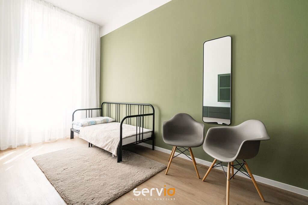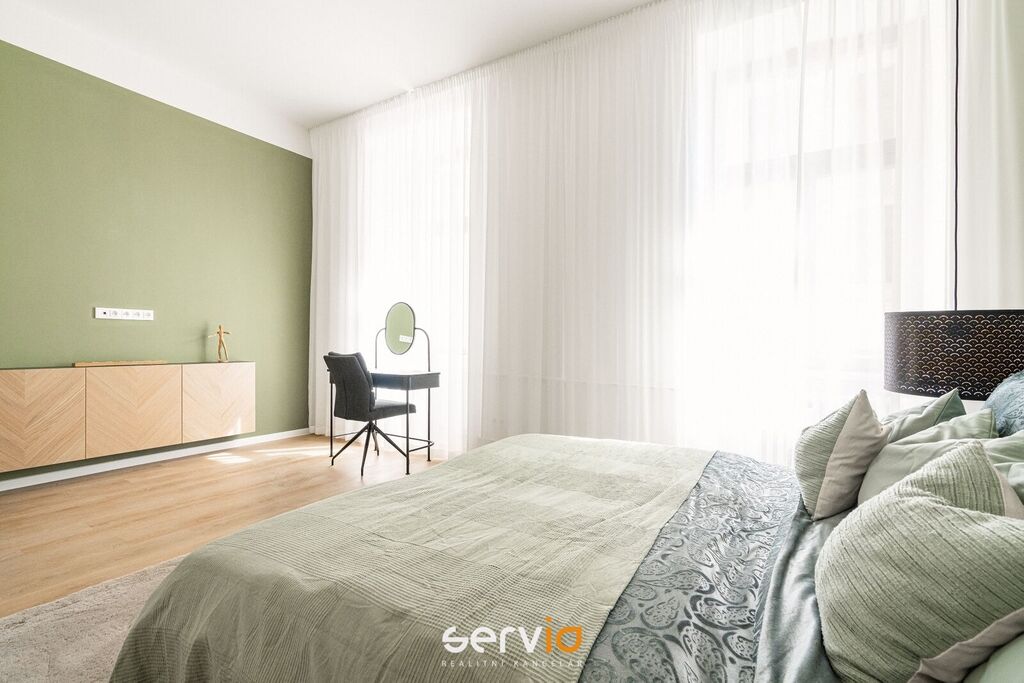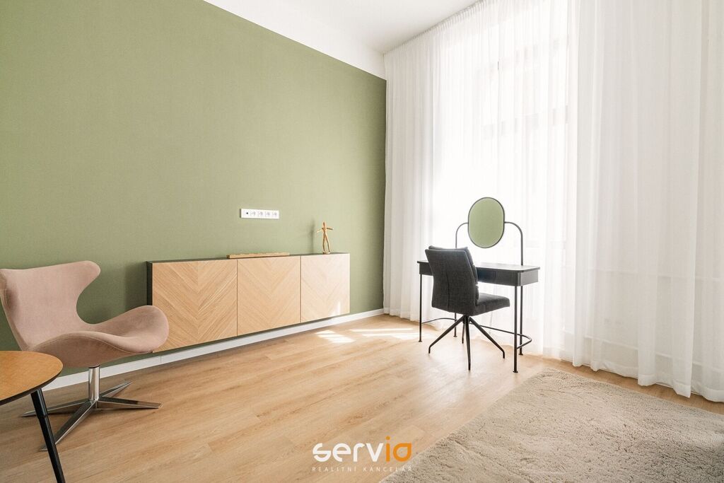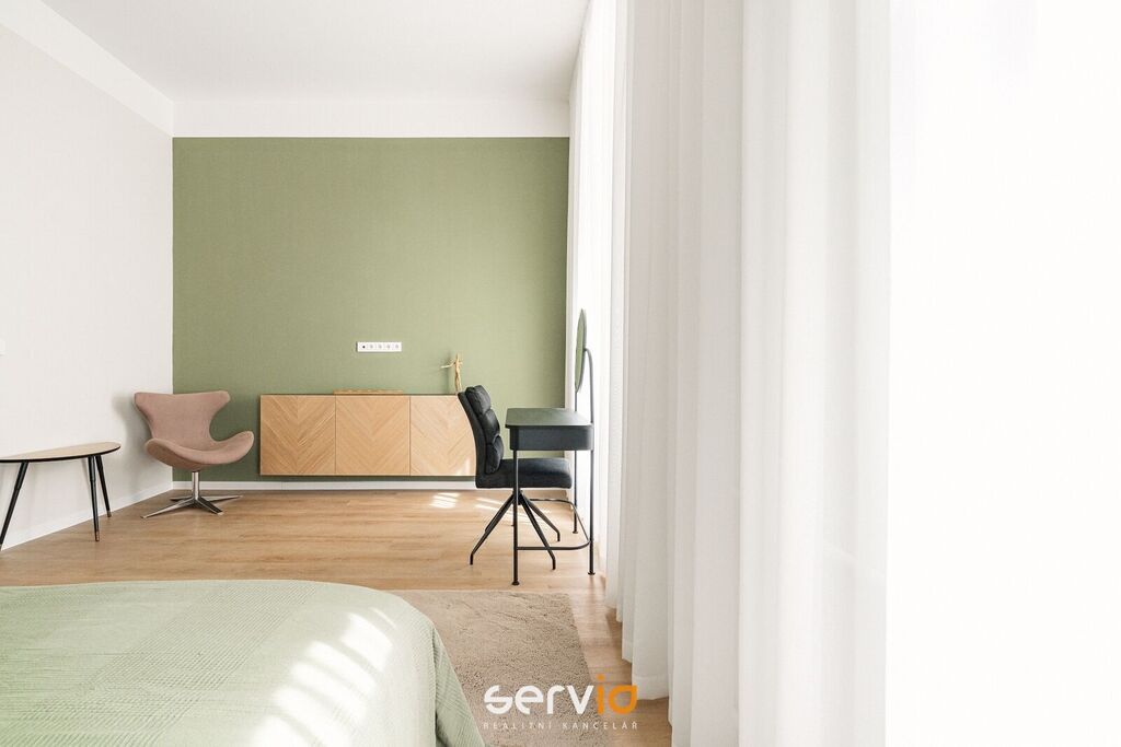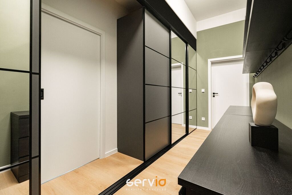 Při rekonstrukci byly použity vinylové plovoucí podlahy, povrch srovnán vyrovnávacím podsypem, podkladem fermacell a nivelací ve všech místnostech. Vyměněny všechny rozvody sítí (topení původní - tělesa a rozvody revitalizované nátěrem). V koupelně a WC je položená dlažba. Bezfalcové dveře se skrytými panty. Vybavení dále zahrnuje kuchyňskou linku se zabudovanými spotřebiči (el. trouba, mikrovlnná trouba, indukční deska, lednice s mrazákem), vestavné skříně, velká postel, sedačka, stoly, židle a ostatní nábytek na fotografiích. Koupelna nabízí nadstandardně prostorný sprchový kout s vyspádovaným odtokem, prostor na pračku a sušičku. Samostatné závěsné WC s pod-omítkovým splachováním a s bidetovou sprchou. Designové záclony Décora na míru. Chytré vypínače + HUB pro ovládání světel pomocí mobilní aplikace. U většiny osvětlení lze nastavit intenzita, v obývacím pokoji navíc i "teplota" světla. Prostorná šatna, sloužící zároveň i jako průchozí chodba do ložnice a dětského pokoje/pracovny. Vytápění a ohřev vody dálkově z tepláren. V bytě je zapojen internet a wifi router.