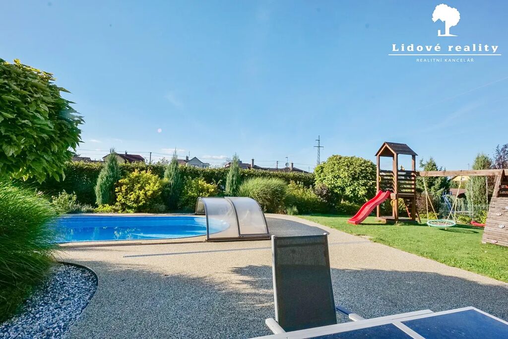 Prodej moderního rodinného domu 4+kk s garáží, bazénem a zahradou v obci Sviadnov, pozemek 1 495 m2