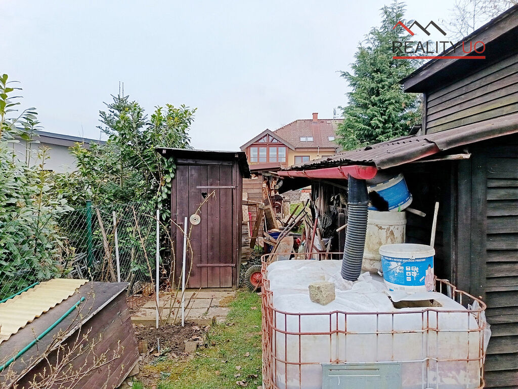 V zadní části pozemku se nachází obytná zahradní chata s číslem evidenčním. Chata je podsklepená.