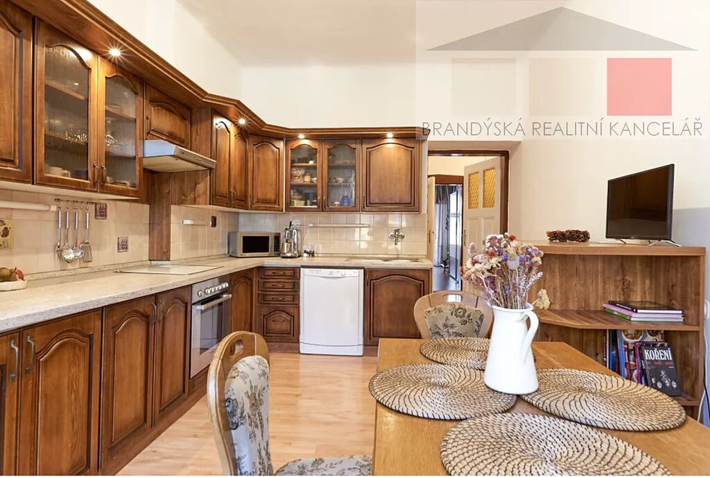 Byt se sestává ze vstupní haly (11,7m2), obývacího pokoje (22,9m2), kuchyně (16,3m2), ložnice (24,5m2), pokoje (16,0m2), koupelny (3,8m2), WC (1,6m2) a šatny (3,9m2), k bytu dále náleží sklep v suterénu domu. Vytápění bytu a ohřev TUV je zajištěn vlastním plynovým kotlem. Měsíční náklady SVJ činí 3.846,-Kč (včetně fondu oprav a zálohy na vodné a stočné) + elektřina a plyn.