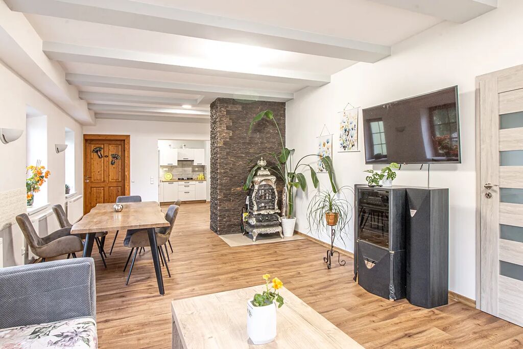 Nabízíme k prodeji nádherný a prostorný rodinný dům v Petrovicích, který prošel kompletní rekonstrukcí. Tento cihlový dům o třech nadzemních podlažích nabízí celkem 10 místností, včetně dvou velkých moderních bytů a čtyř pokojů, každý s vlastní koupelnou. Díky této dispozici je ideální nejen pro rodinné bydlení, ale také pro podnikání jako penzion či jiné ubytovací zařízení. Dům se nachází v klidné části obklopené přírodou s krásným výhledem na Lužické hory z prostorné terasy. Je situován poblíž německých hranic, nedaleko města Žitava a blízko měst Jablonné v Podještědí a Liberec. Tento luxusní dům je ideálním řešením pro ty, kteří hledají klidné bydlení v přírodě s dobrou dostupností městských center. Celková plocha pozemku činí 378 m². Nezmeškejte tuto jedinečnou příležitost!