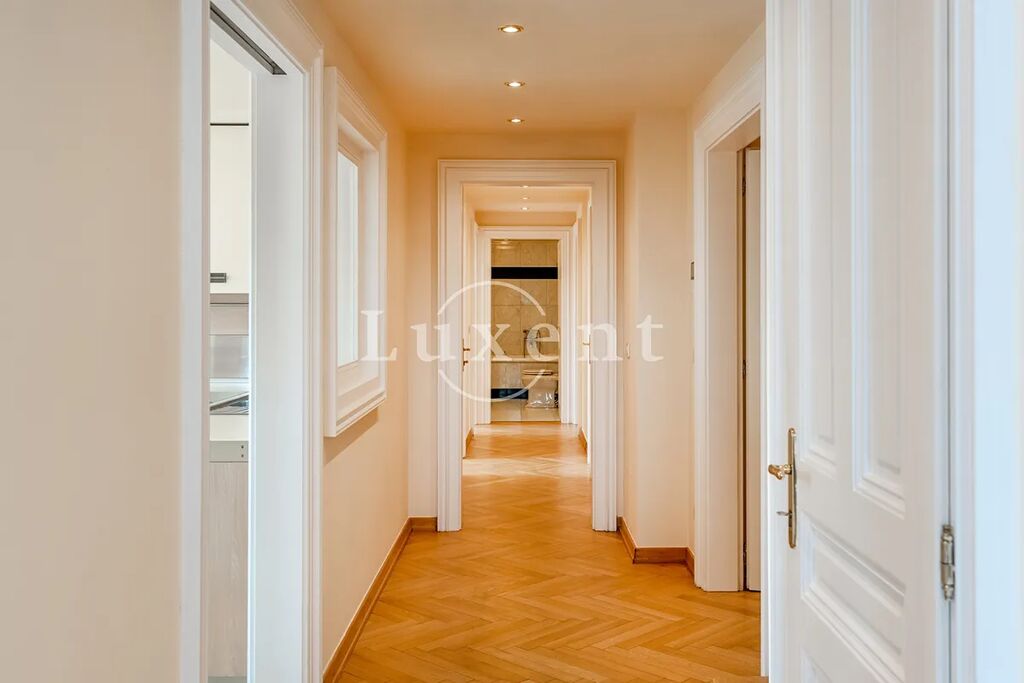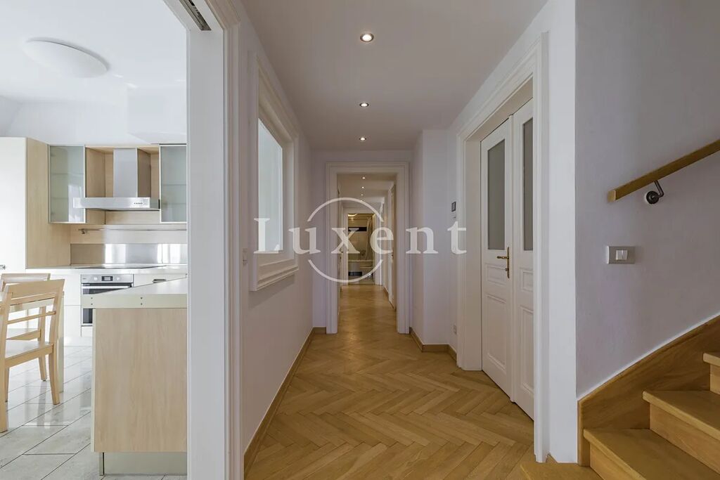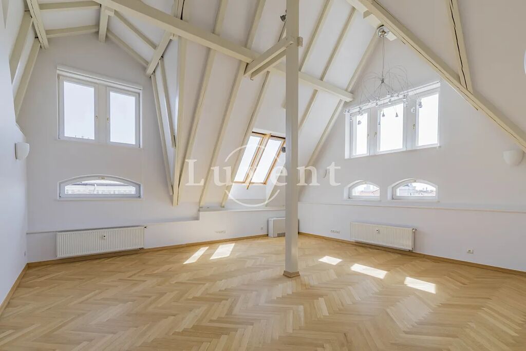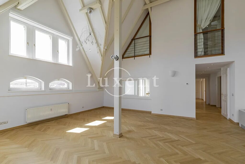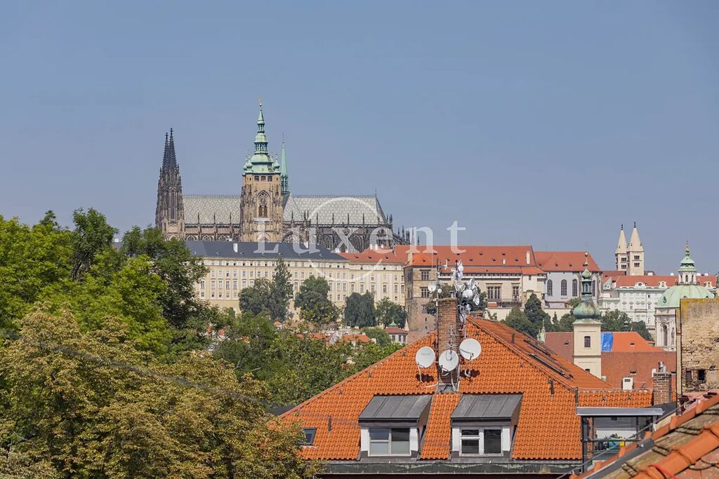 Nabízíme k pronájmu unikátní mezonetový byt 5+1 o obytné ploše 286 m2 s terasou ve vyhledávané lokalitě na na Malé Straně. Byt je situován v 5. a 6. patře historického činžovního domu z 19. století, který prošel kompletní rekonstrukcí, v rámci které byl mimo jiné vybudován podzemní parking. Parkování je k dispozici za příplatek. Budova má velmi reprezentativní vstup a stejně jako v každé exkluzivní residenci je i zde recepce.