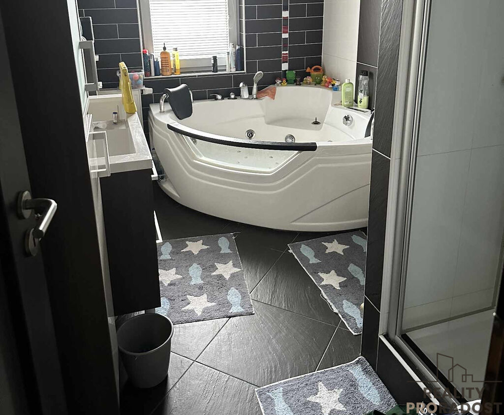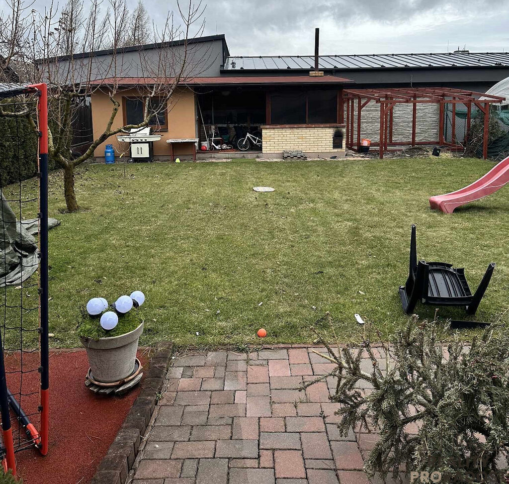 Podlahy 1.NP kuchyni a koupelně- dlažba v obývacím pokoji vinylová podlaha, 2.NP vinylová podlaha koupelna - dlažba, v ložnici plovoucí. Na zahradě se nachází venkovní zastřešená garáž a nový zahradní domek na zahradní nářadí + dokončuje se venkovní kuchyň a k dispozici i krb s udírnou.