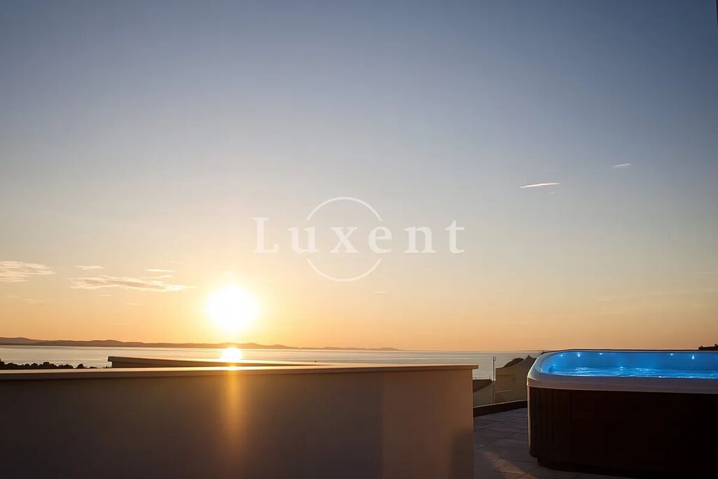 Unikátní výhodou je vnitřní schodiště, které vede na velkolepou střešní terasu o rozloze 93,50 m2. Tato terasa nabízí nádherný panoramatický výhled na moře a historické město Zadar. Součástí vybavení terasy je vířivka, ideální pro relaxaci.