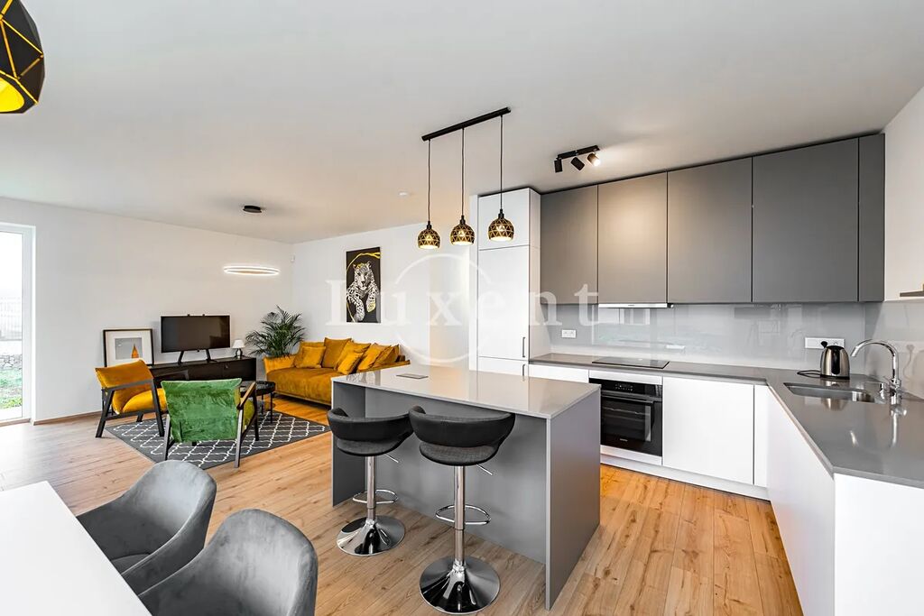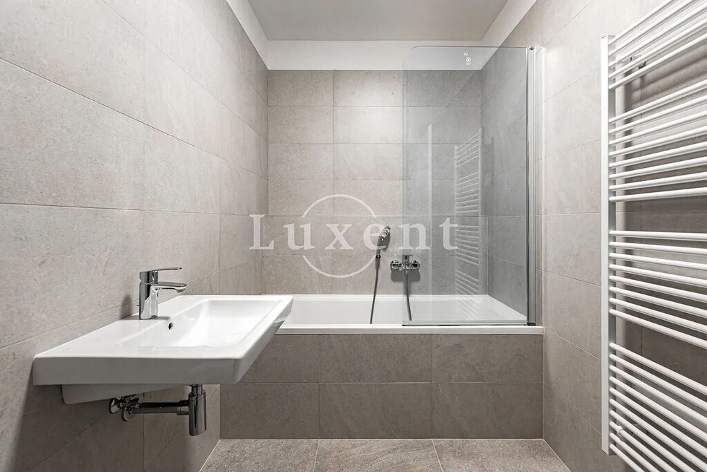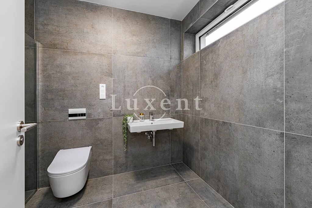 V přízemí domu je předsíň, koupelna, prádelna, tech. místnost a pak obývací pokoj příjemně prosklený do zahrady a na terasu. Je zde též integrovaná garáž s přípravou pro dobíjecí stanici. V patře je pak hlavní ložnice s vlastní koupelnou a šatnou, dva dětské pokoje s druhou koupelnou a úložná komora. Chodba nad schodištěm je prosvětlena světlíkem s přípravou pro el. pohon. Více viz přiložené půdorysy. Na podlahách je kvalitní laminátová plovoucí podlaha (dekor dle domu) a keramická dlažba. Vybavení koupelen: Villeroy & Boch.