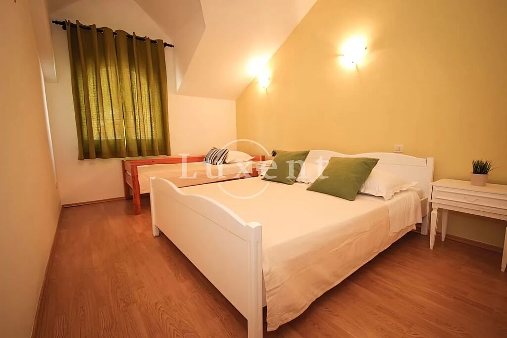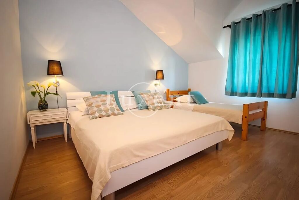 V přízemí domu se nacházejí tři samostatné jednopokojové apartmány. Tyto jednotky jsou vhodné jak pro krátkodobý turistický, tak i pro dlouhodobý pronájem. V prvním patře je situován prostorný apartmán, který disponuje velkou lodžií a nabízí krásný výhled na moře. Ve druhém patře se nachází další třípokojový apartmán s přístupem na lodžii a otevřenou terasu, která poskytuje příjemný venkovní prostor k relaxaci. V podkroví je umístěn prostorný třípokojový byt s balkonem, ideální například pro rodinu.