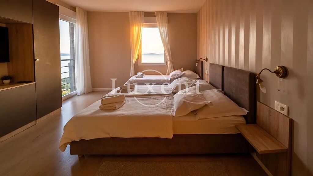 Nabízíme k prodeji dvě exkluzivní rekreační vily, které se nacházejí v bezprostřední blízkosti moře a pyšní se panoramatickým výhledem na Středozemní moře. Obě nemovitosti se nacházejí na jižní straně a jsou obklopeny zelení, která zajišťuje dostatek soukromí i příjemné mikroklima. Vyznačují se čistými liniemi, moderním architektonickým stylem a promyšleným dispozičním řešením.