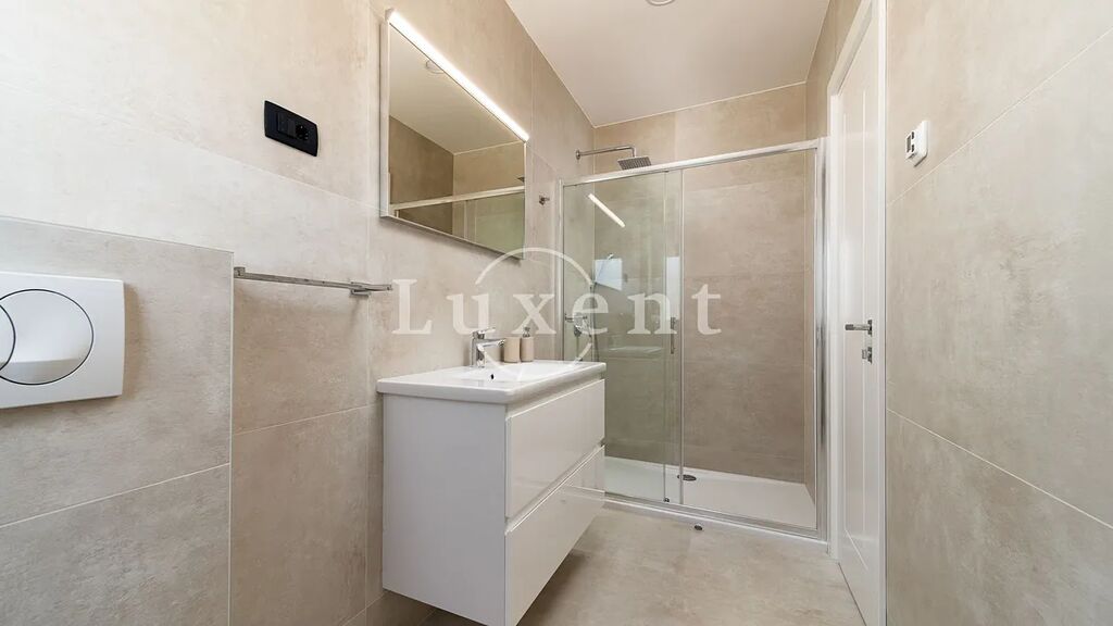 V suterénu se nachází místnost určená pro volnočasové aktivity, prostorná tělocvična a elegantní koupelna. Přízemí domu tvoří světlý, moderně zařízený obývací pokoj propojený s kuchyňským koutem, jedna ložnice, další koupelna a tři terasy – z toho dvě částečně kryté, ideální pro klidné chvíle i letní večery s přáteli. V prvním patře se nachází čtyři ložnice s vlastními koupelnami a dva balkony, které nabízejí panoramatické výhledy na moře a okolní pobřeží.