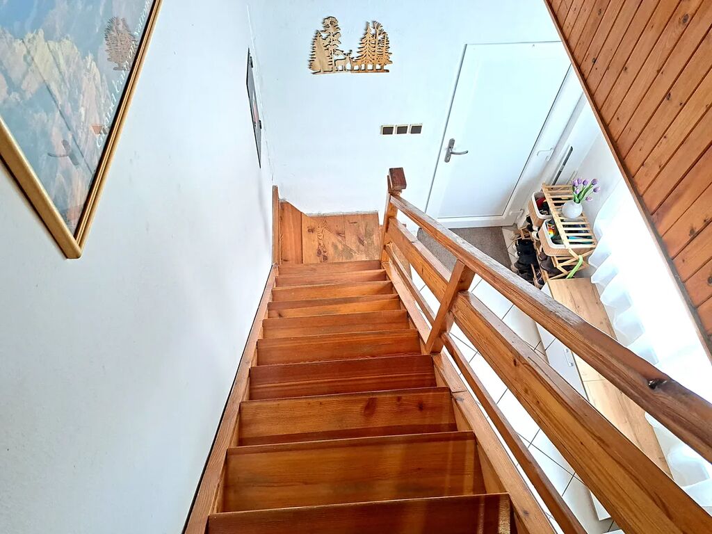V patře jsou dva neprůchozí pokoje a šatna (skvělý úložný prostor). Z každého pokoje je výstup na balkón s příjemným výhledem přímo do zeleně.