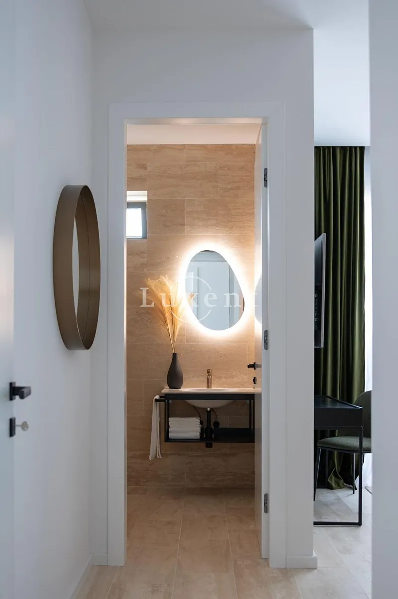 Vila o rozloze 130 m2 je provedena ve velmi vysokém standardu s důrazem na kvalitu materiálů, vybavení i design. Interiér nabízí tři ložnice, dvě koupelny, technickou místnost s pračkou a sušičkou, a prostorný obývací pokoj propojený s jídelnou a terasou. Exteriér doplňuje venkovní krytá kuchyně s grilem a infinity bazén s vyhříváním a protiproudem, který umocňuje luxusní atmosféru celého prostoru. Součástí pozemku je i zahrada s plně automatickou závlahou a dekorativním LED osvětlením, kde rostou středomořské rostliny a ovocné stromy jako citrony, pomeranče a mandarinky.