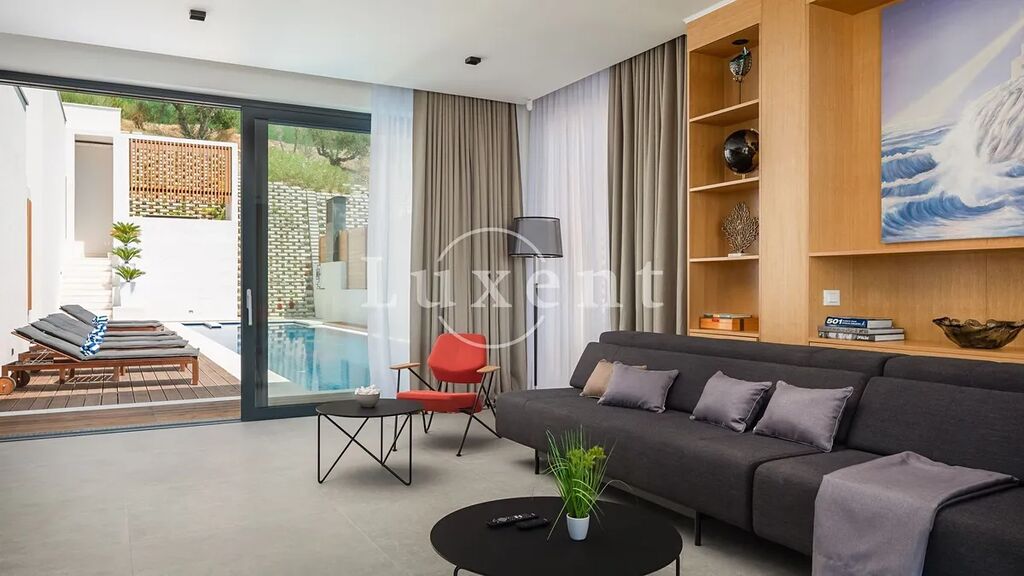 Přístup do objektu i k vybavení vily je zajištěn prostřednictvím moderních kódovaných karet, což podtrhuje důraz na bezpečnost a pohodlí.