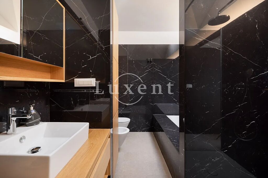 První patro je věnováno wellness zóně, která nabízí vše pro relaxaci a regeneraci: vstupní část s posilovnou, hydromasážní vířivku, tropickou sprchu, saunu, odpočinkovou místnost a prostornou terasu s výhledem na moře – ideální pro soukromý odpočinek nebo wellness víkendy s přáteli.