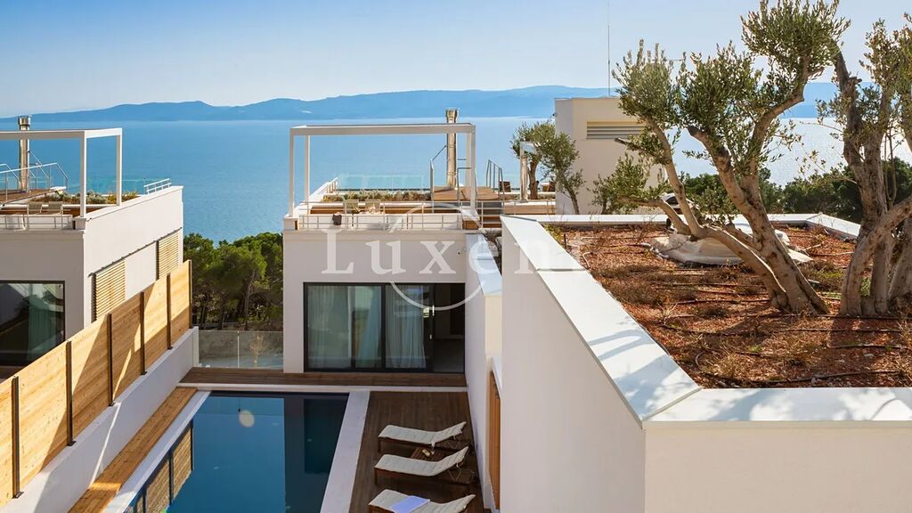 Nabízíme k prodeji atraktivní luxusní vilu s dechberoucím výhledem na moře, která se nachází v klidné oblasti nedaleko vyhledávaného letoviska Omiš. Tato výjimečně navržená vila o celkové obytné ploše 289 m2 se rozprostírá na čtyřech úrovních – přízemí, dvou nadzemních podlažích a střešní terase – a je vybavena řadou prémiových prvků pro maximální komfort a moderní životní styl.