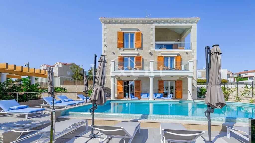 Na prodej je nově postavená kamenná vila s přepadovým bazénem, která se nachází jen 50 metrů od moře v rezidenční části Rogoznice, obklopena luxusními nově postavenými vilami. Celá vnější fasáda vily je vyrobena z 3 druhů ručně tesaného kamene, díla nejlepších kameníků z ostrova Brač, což vile dodává jedinečný a tradiční vzhled.