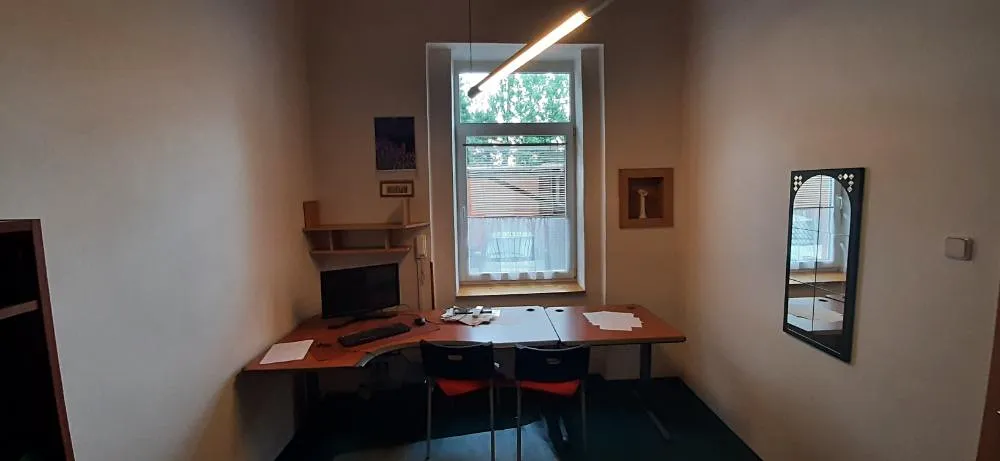Kancelář je vhodná pro notáře, advokáty, daňové poradce, účetní, pojišťovací agenty, atd. Pro jejich případné klienty je dobrá dostupnost parkování na náměstí E.Husserla. Podnikání v centru města, ve velice pěkném a tichém prostředí.