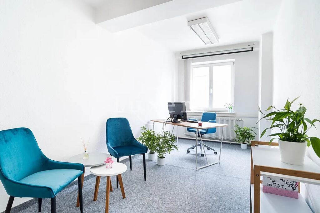 Zájemce si kancelář může vybavit zcela dle svých vlastních potřeb. Velkou výhodou je také přítomnost okna s výhledem na krásné historické objekty nacházející se v blízkosti budovy. Je to velmi reprezentativní prostředí s veškerým vybavením pro pohodlnou a efektivní práci.