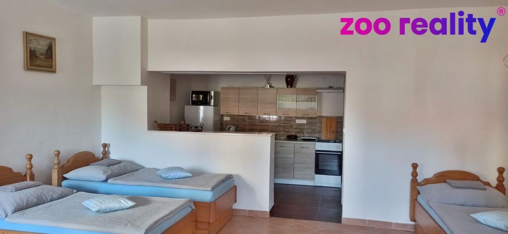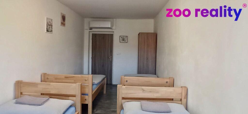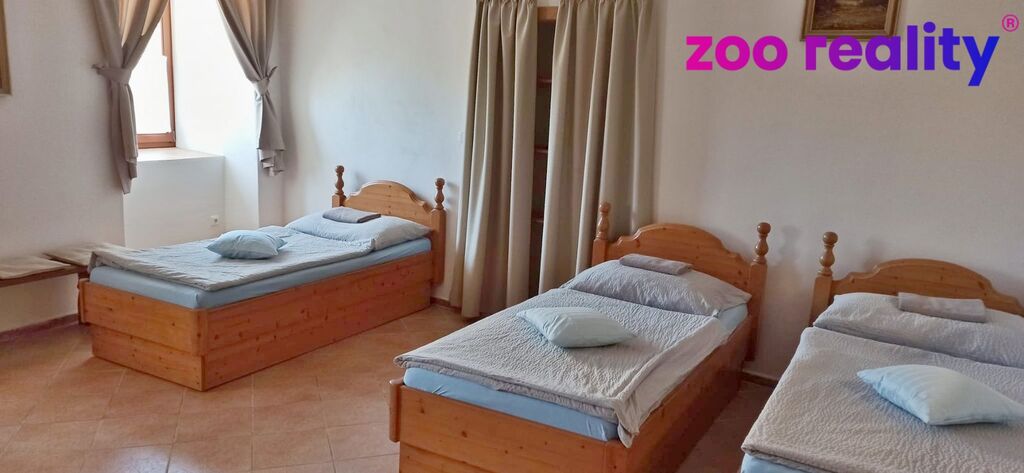 Nabízíme k prodeji zavedený penzion se stálou klientelou v obci Rožmberk nad Vltavou. Penzion disponuje celkem 21 lůžky + možnost 4x přistýlka. Dispozice: přízemí - apartmán se samostatným vchodem (kuchyňský kout, koupelna se sprch. koutem a WC), společenská místnost s kanadskými kamny, kuchyně, skladovací prostor, technická místnost + další prostor pro vybudování dalšího apartmánu, nebo prostorů pro vlastní potřebu. 1. NP - 6x pokoj s vlastní koupelnou a WC, společná chodba, byt správce, komora, 2x technická místnost. Každý pokoj má svou tepelnou jednotku na vytápění s využitím v letních měsících jako klimatizace. V budově velký půdní prostor s vlastním vchodem s možností vybudování dalších ubytovacích prostorů. Dům prošel rekonstrukcí: každý pokoj nové rozvody elektřiny, vody a odpadů, podlahy, koupelny a další. Nová střešní krytina, okna. Obecní vodovod a kanalizace. Vybavení pokojů zůstává vč. nových lůžkovin. Součástí prodeje je část přilehlého pozemku o velikosti cca 850 m2 (bude přiděleno geometrickým plánem), již nyní na části pozemku parkoviště pro 8 os. aut. Penzion se nachází na velmi dobrém místě v obci s velkým podnikatelským potenciálem.. Zajistíme financování hypotečním úvěrem. Volné dle dohody. Možnost přebrání provozu penzionu s již obsazenými termíny ubytování.