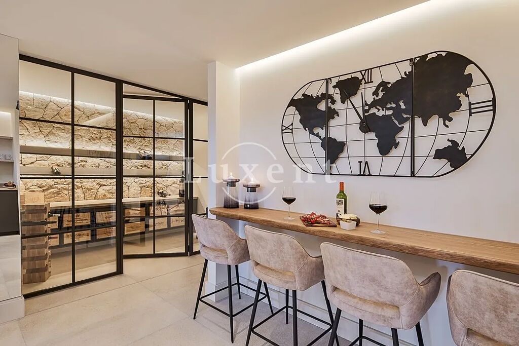 Vila disponuje pěti prostornými ložnicemi, z nichž tři se nacházejí v hlavní budově a dvě v odděleném křídle pro hosty, každá s vlastní koupelnou a terasou. Prostorný obývací prostor s krbem plynule přechází v terasu s vyhřívaným posezením z přírodního kamene a venkovní kuchyní, ideální pro grilování a společenské akce. Z designové kuchyně Poliform a elegantní jídelny si můžete vychutnávat výhledy na přístav od východu do západu slunce.