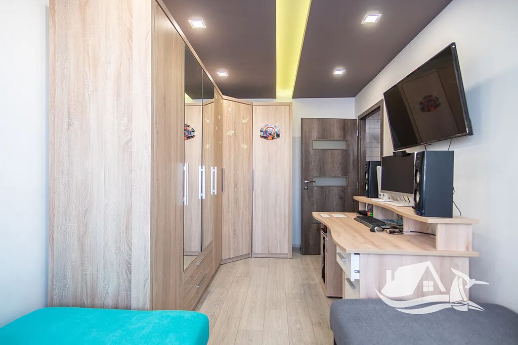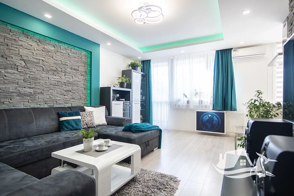 Interiér bytu je navržen s citem pro detail a odolnost materiálů, v kuchyni i koupelně najdete luxusní obklady a sanitu, v obývacím pokoji a ložnicích kvalitní vinylovou podlahu, která si zachovává vzhled dřeva a přitom vydrží každodenní provoz.