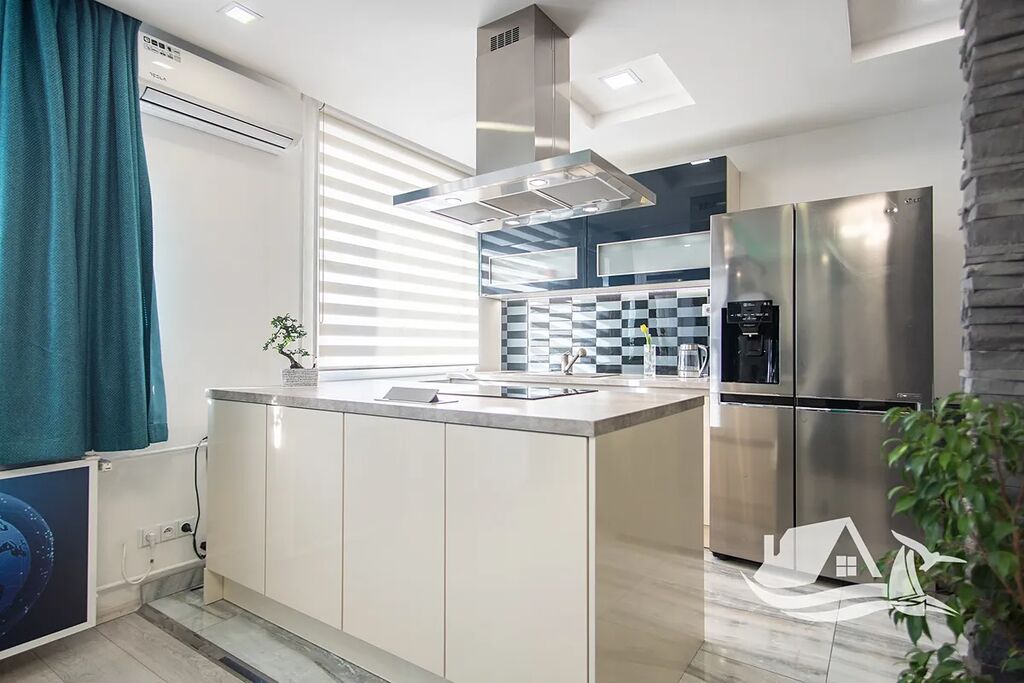 Během kompletní rekonstrukce prošly bytem nové elektroinstalace, vodovodní rozvody a snížené stropy s diskrétním LED osvětlením ve všech místnostech, díky čemuž prostor působí vzdušně a moderně až na míle daleko.