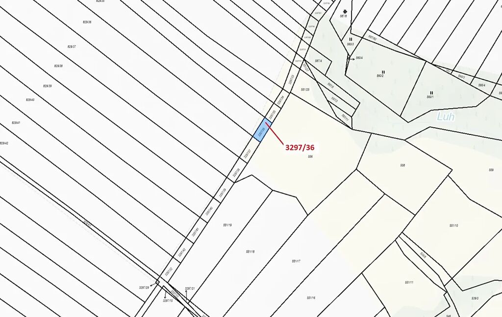 Ostatní plocha o výměře 86 m2, parcelní číslo 3297/36, podíl 1/1, katastrální území Březník, obec Březník, obec s rozšířenou působností Náměšť nad Oslavou, okres Třebíč, Kraj Vysočina.
