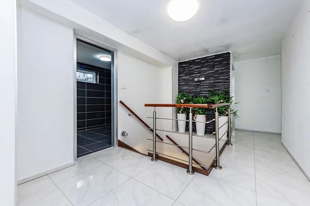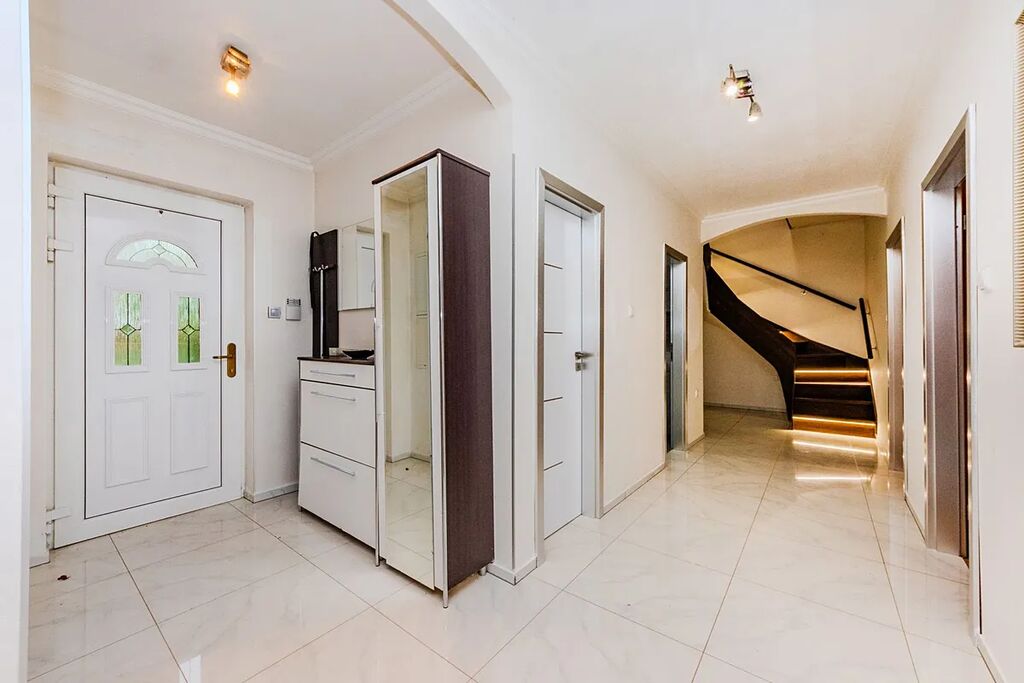 Dům sestává - v 1. nadzemním podlaží se nachází prostorný obývací pokoj s kuchyňským koutem, 2x pokoj pro hosty, koupelna s vanou a WC, technická místnost, prostorná chodba a samostatné WC. Z obývacího pokoje je vstup na terasu a zahradu. V 2. nadzemním podlaží se nachází dvě ložnice, pracovna, šatna, tělocvična, koupelna se sprchovým koutem, vstup na půdu a terasa s výhledem na krásně udržovanou zahradu. Podlahová plocha domu 218 m2.